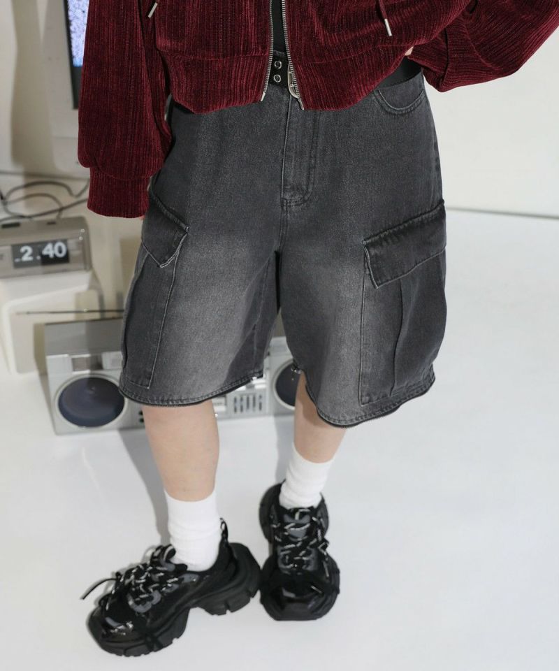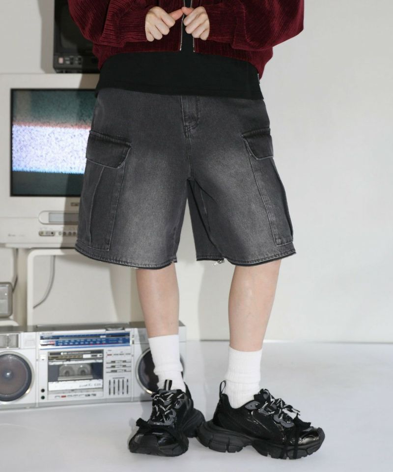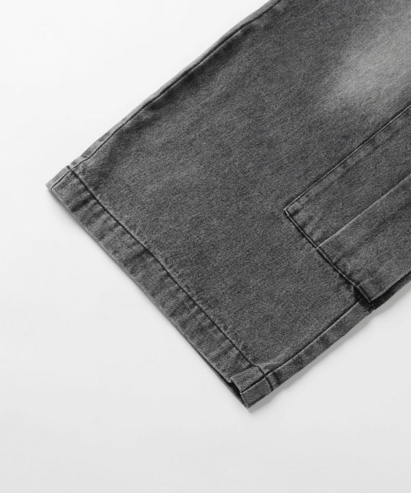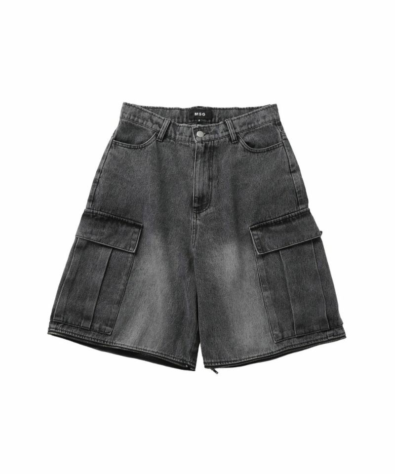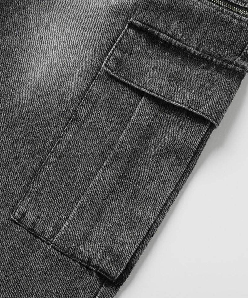 膝に配されたジッパーにより着脱可能な2WAY仕様のカーゴデニムパンツ。切り離しが可能なデタッチャブル仕様で、ジッパーを少し開けて立体感を出したり、ハーフパンツとしても着用することが可能。ヴィンテージ感ある、フロントやヒップに色落ち加工を施した雰囲気のある仕上がり。ゆったりとしたワイドストレートシルエットがこなれ感のある着こなしを演出します。サイドにカーゴポケットを配置し、収納力抜群。レディース、メンズ問わずお使い頂けるユニセックスアイテムです。