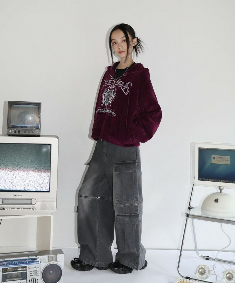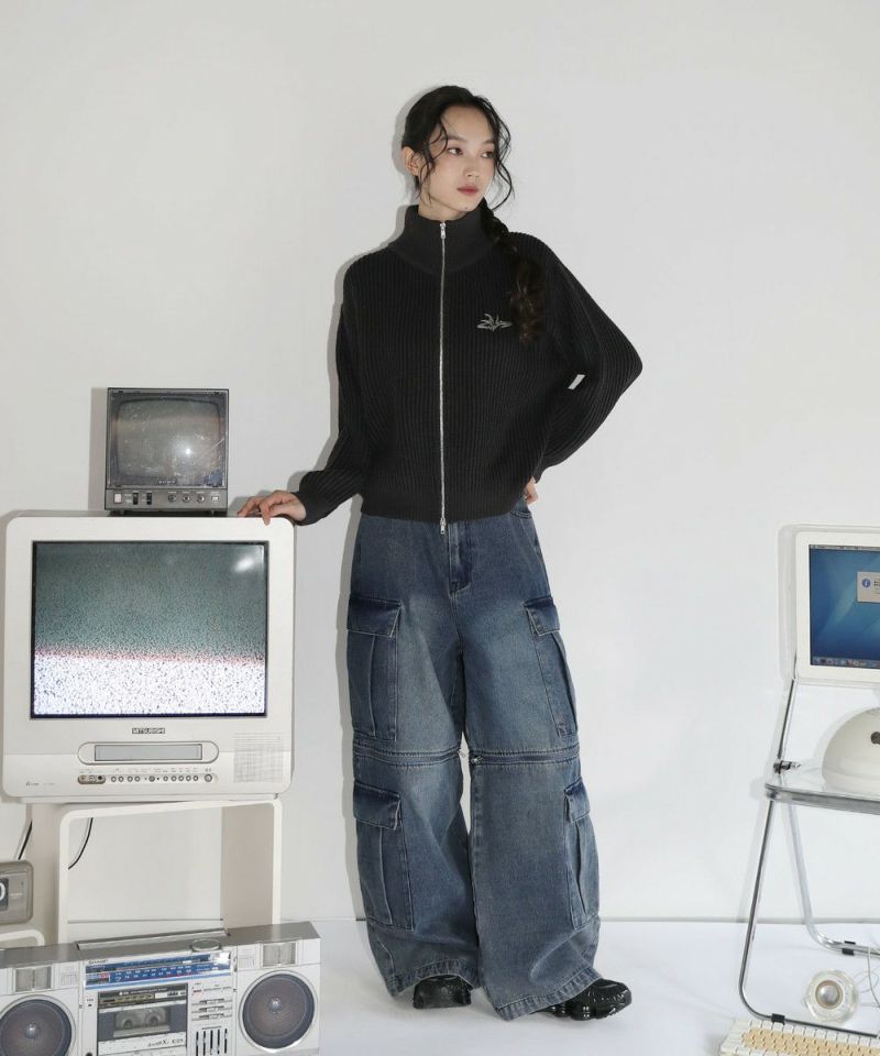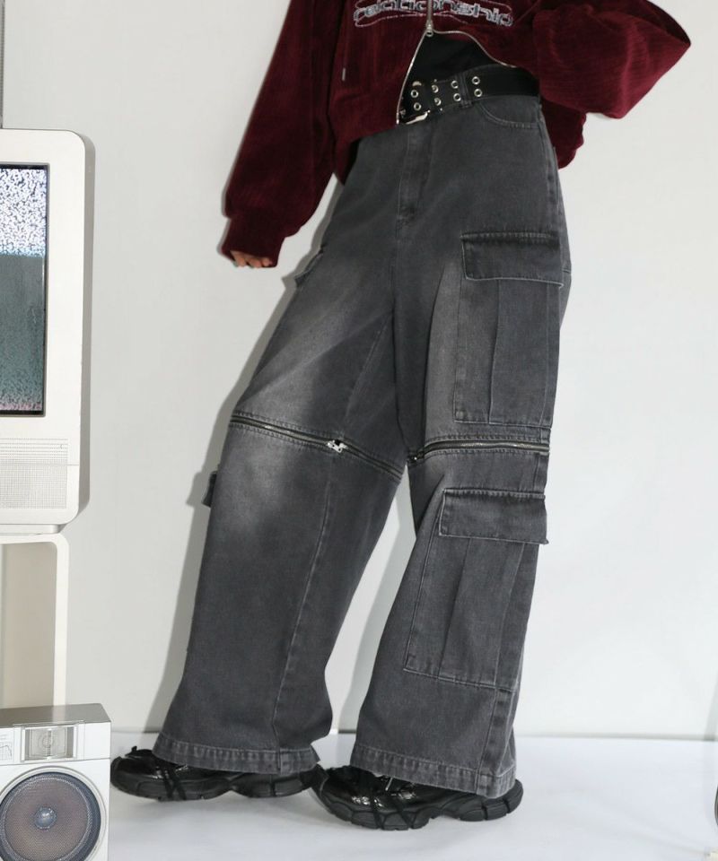 12oz オーバーサイズワイドストレート 2wayZIPカーゴデニムパンツ