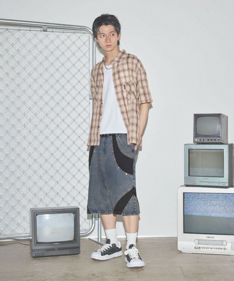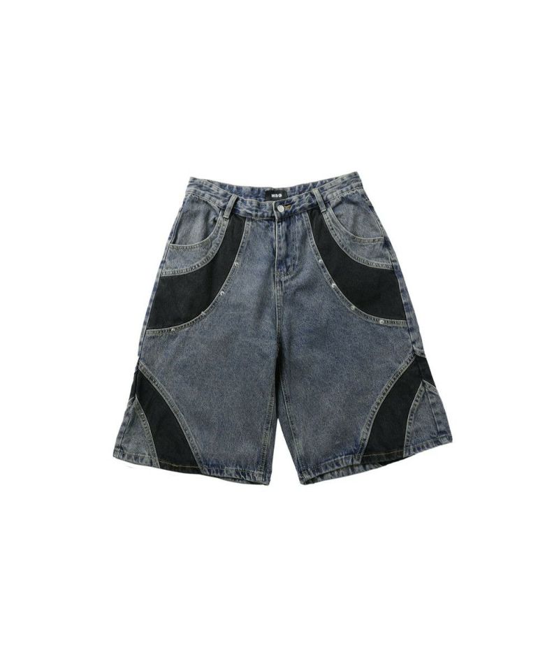 切替バギーデニムショーツ【UNISEX】