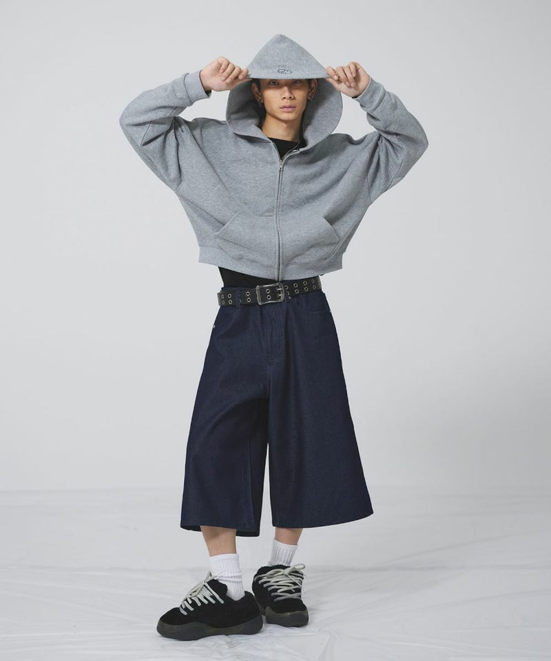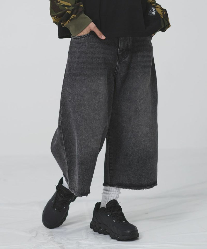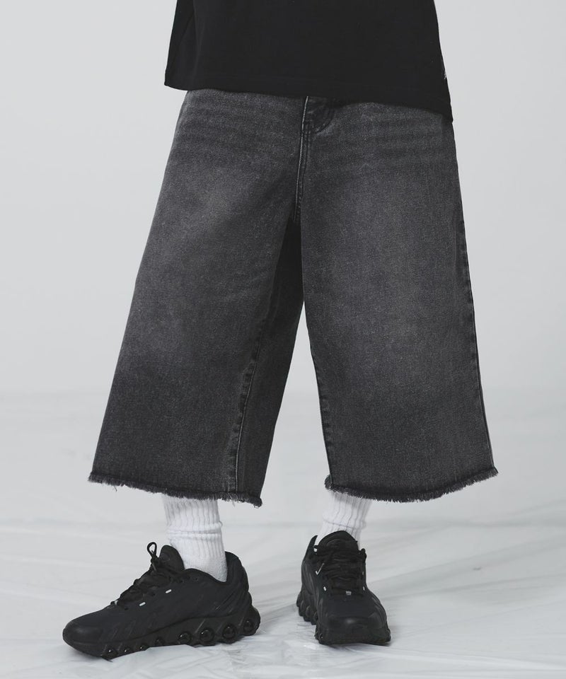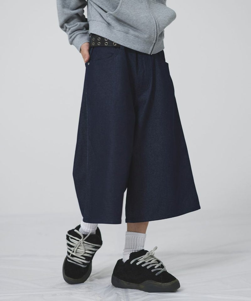 ヴィンテージ加工 ワイドデニムハーフパンツ