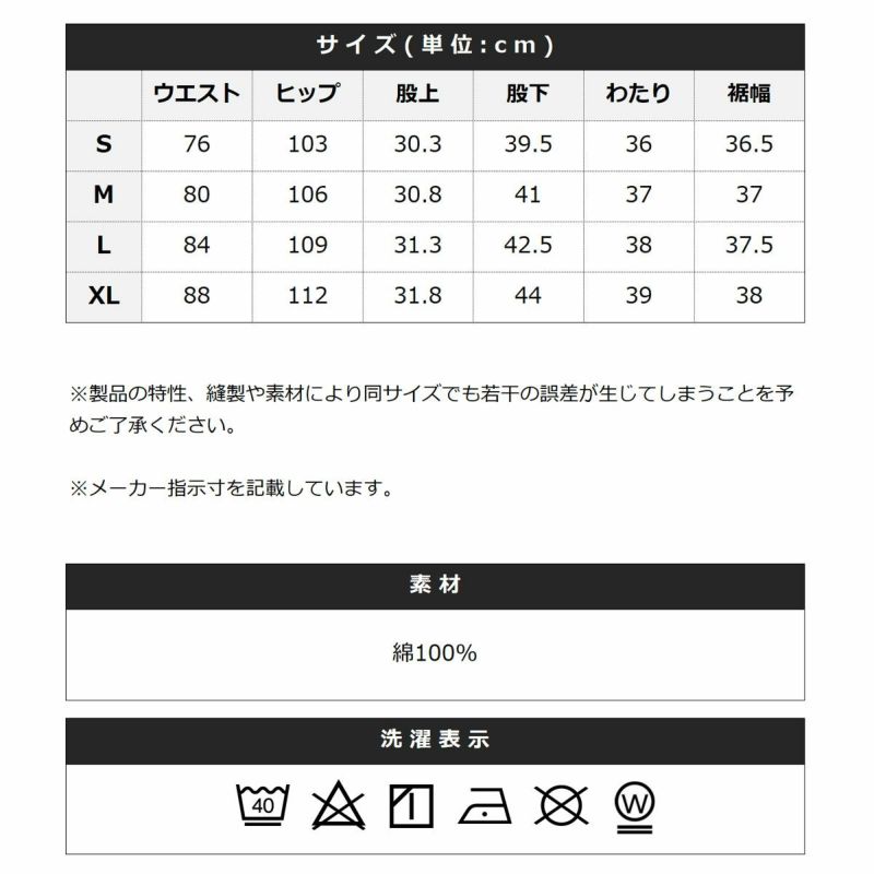 ・素材は綿100%で程よくしなやかさがあり、ごわつき感のない快適な穿き心地。
