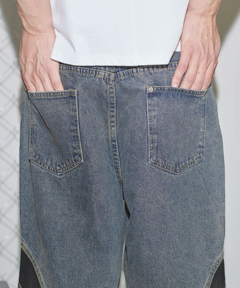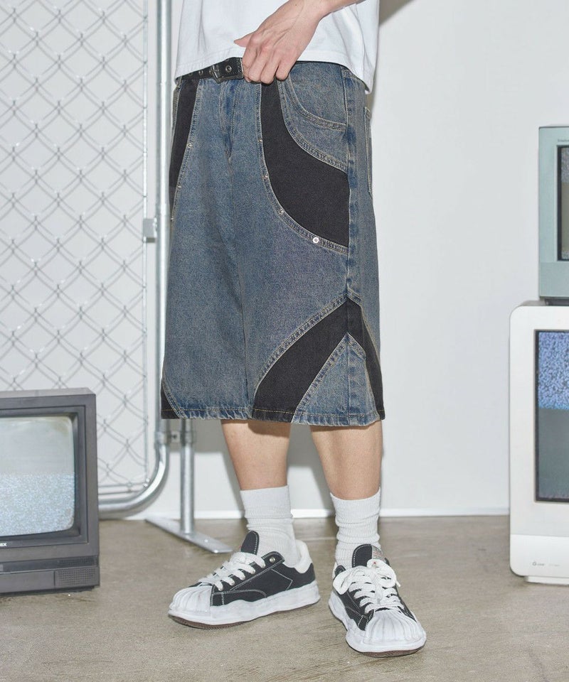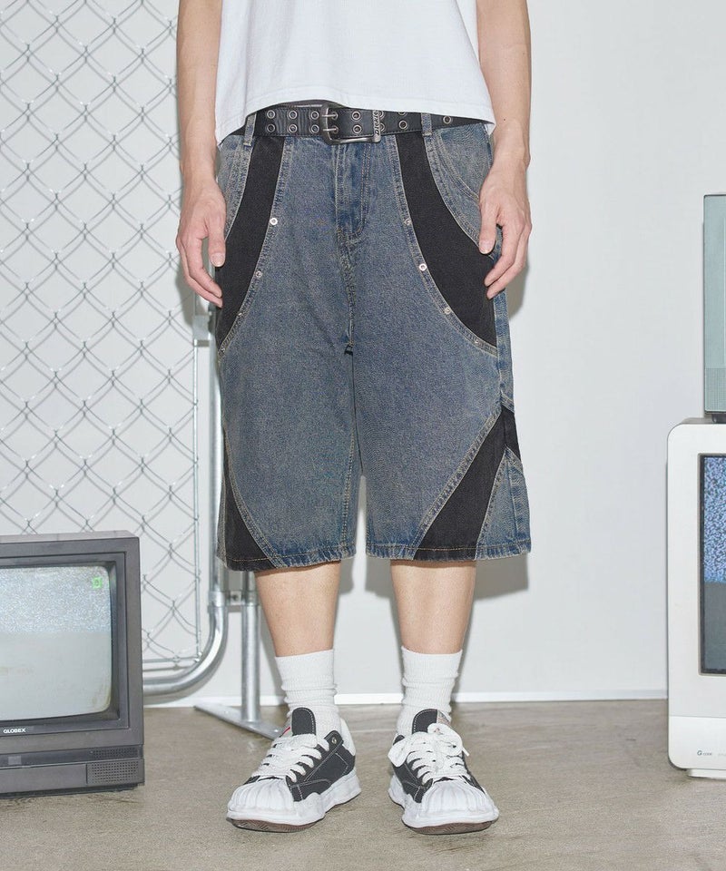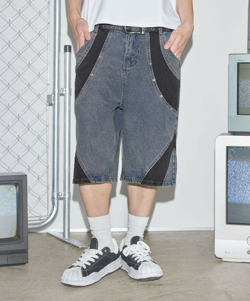 切替バギーデニムショーツ【UNISEX】