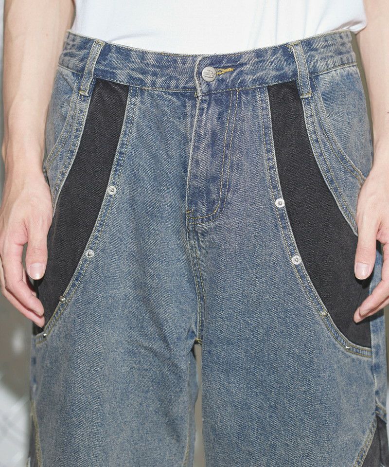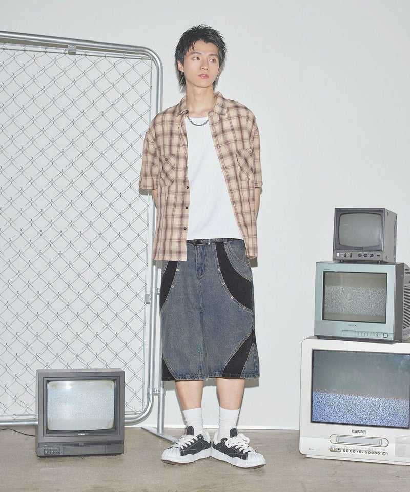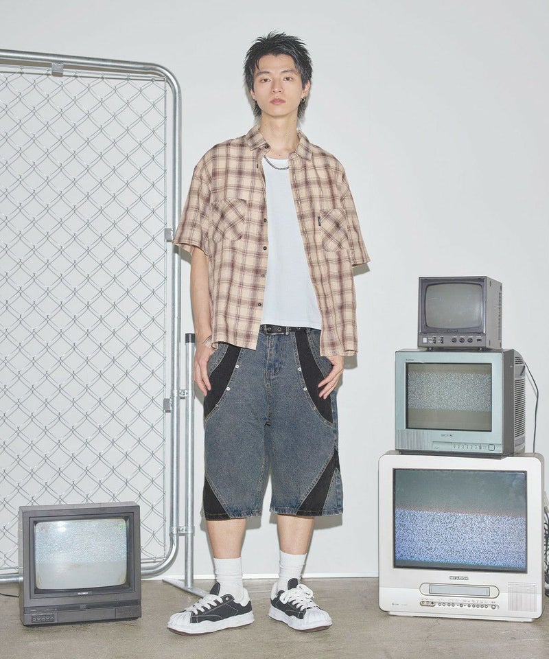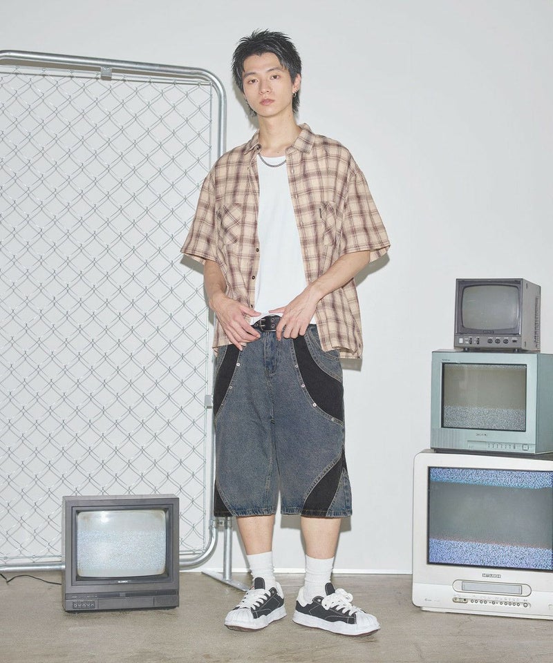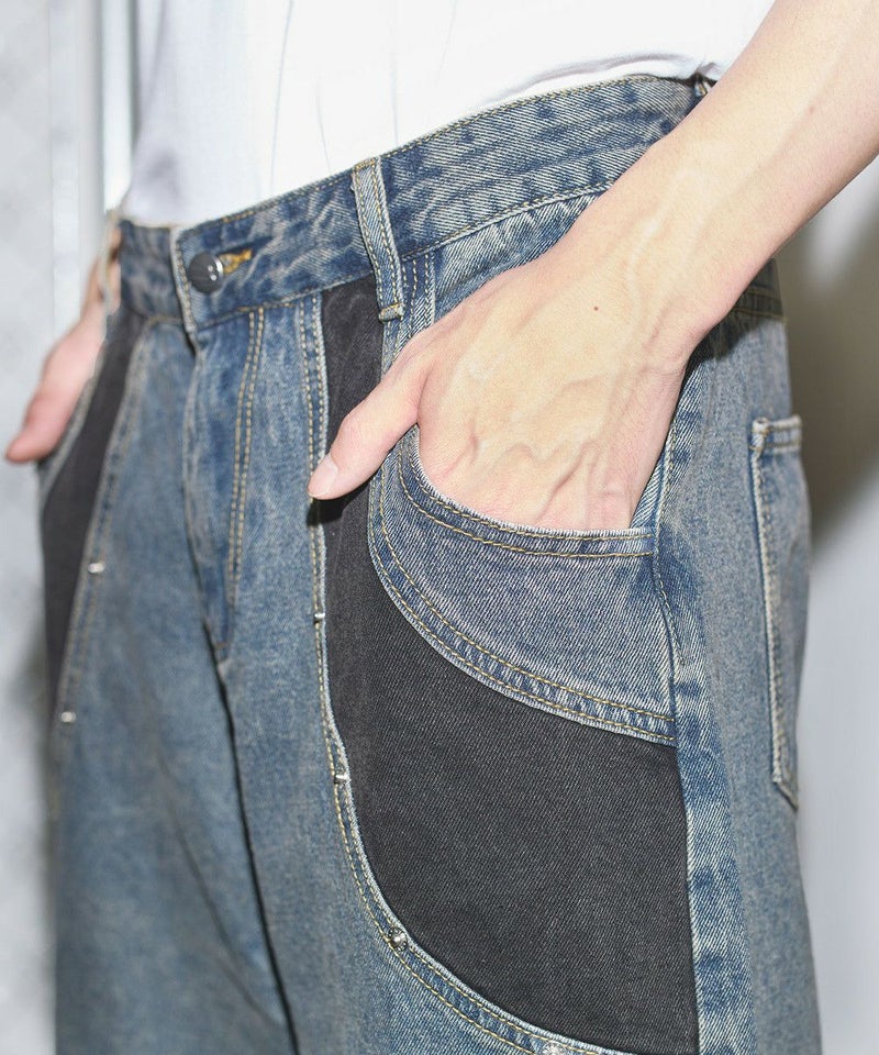 切替バギーデニムショーツ【UNISEX】