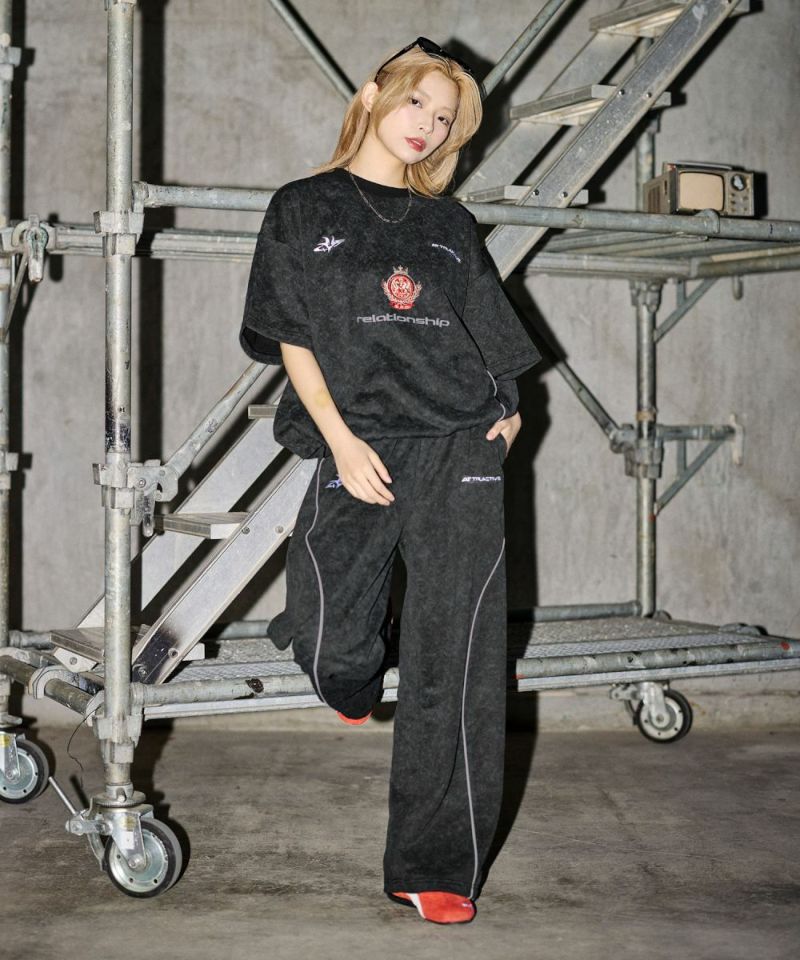 ドローコードパイピングオーバーサイズスウェットパンツ
