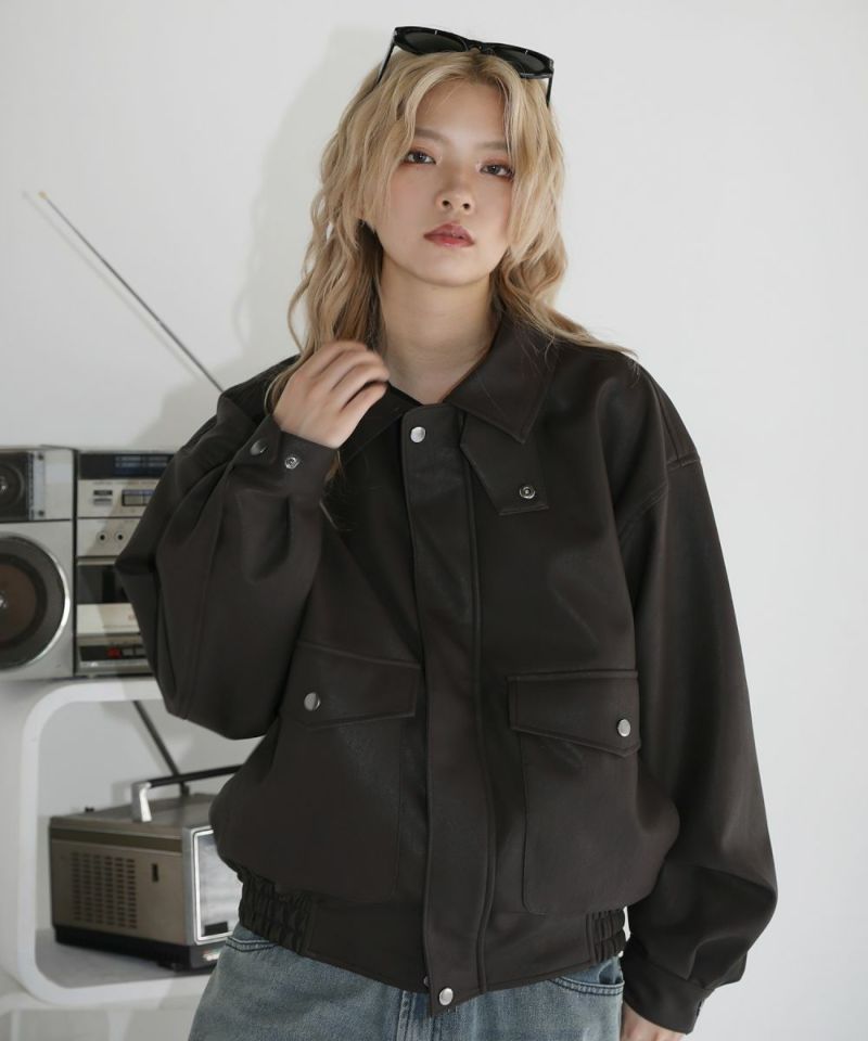 Buyer's Select/ ヴィンテージ加工 PU合皮 A-2ショートブルゾン