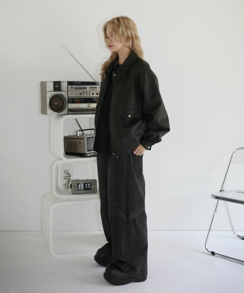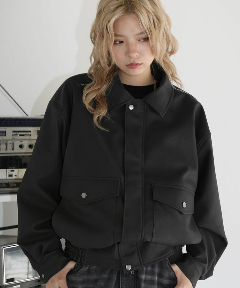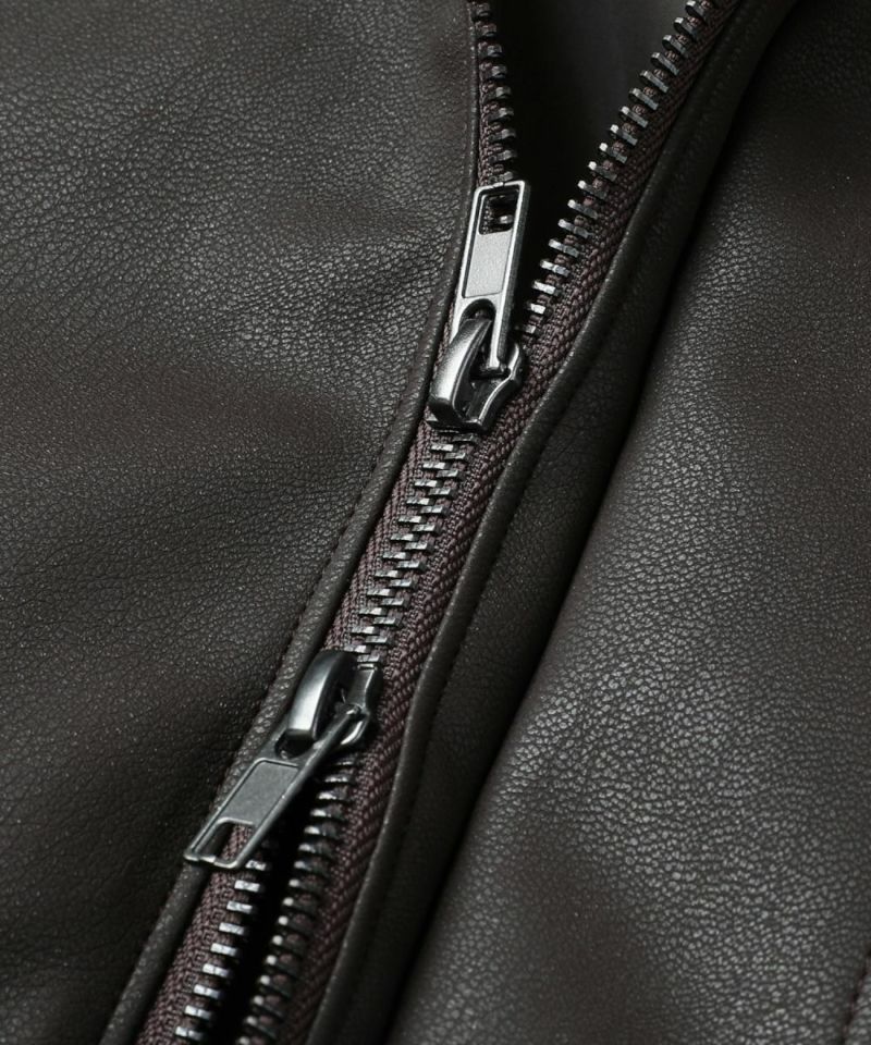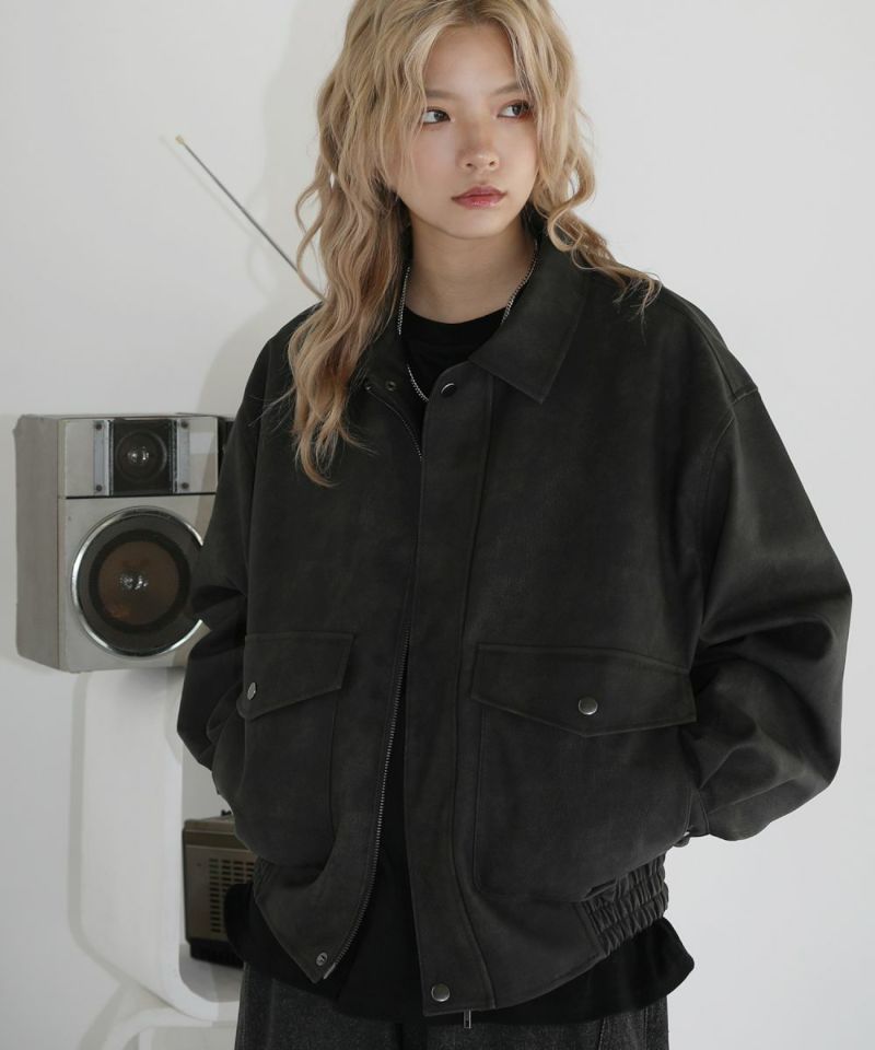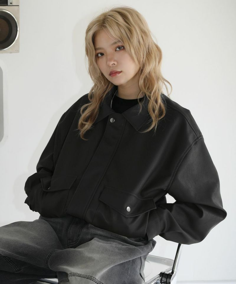 米陸軍航空隊のシンボルであるフライトジャケット、A-2をトレンドに落とし込んだ1着。合成皮革の質感にこだわり、本革のようなシボ感とマットな質感が魅力です。