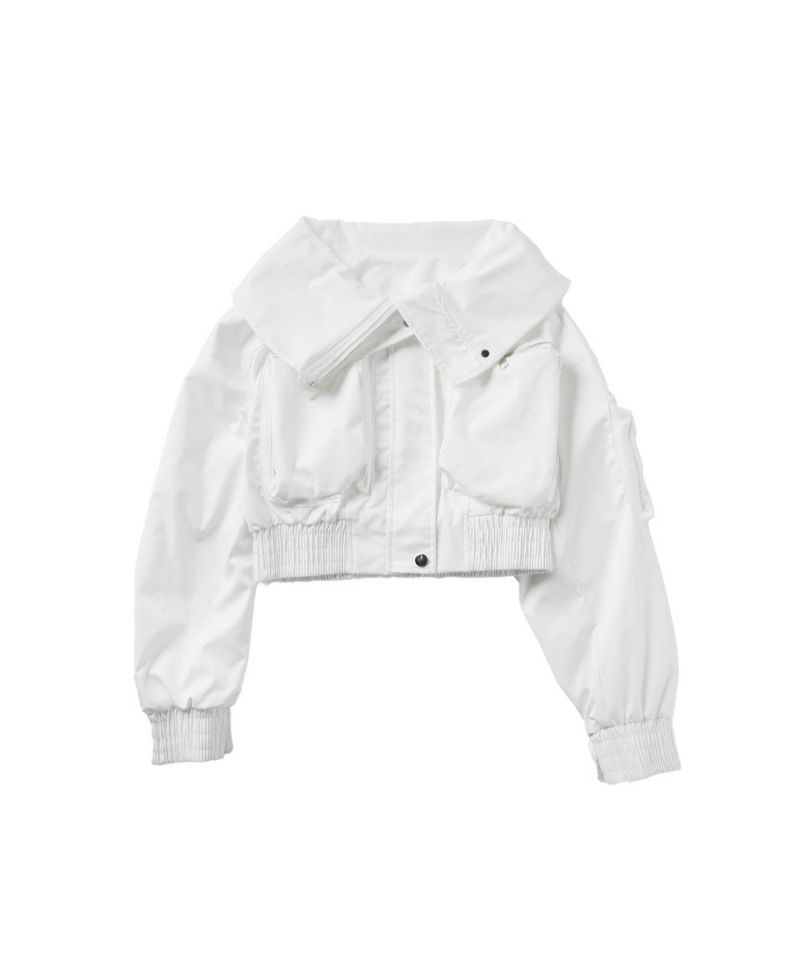 ・大きな襟が目を引く、ファッショナブルなクロップドジャケットです。