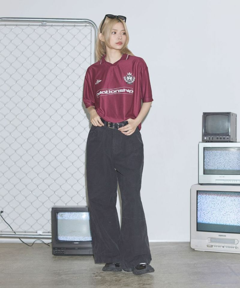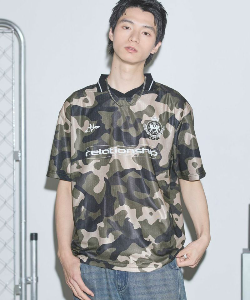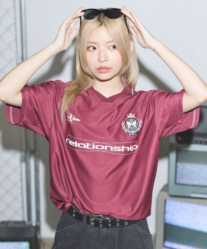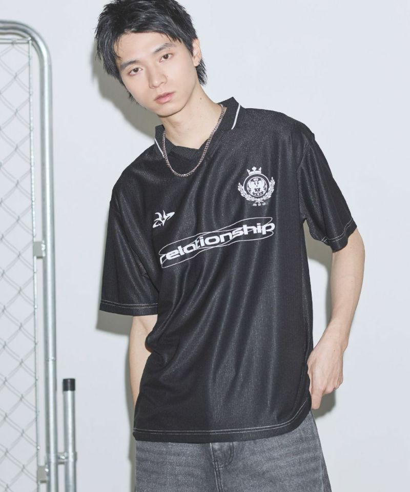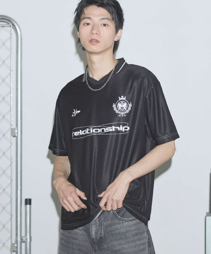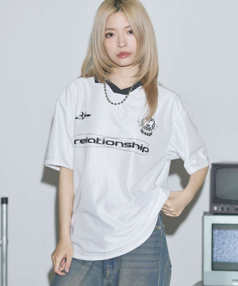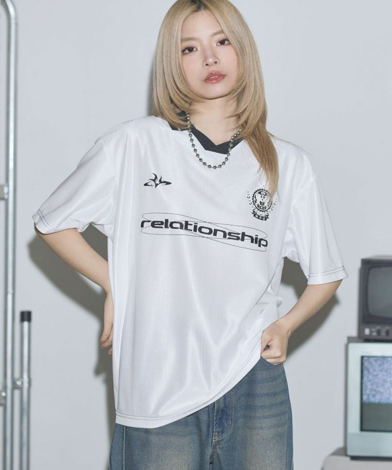 オーバーサイズ襟配色ロゴプリントゲームTシャツ ユニフォームシャツ