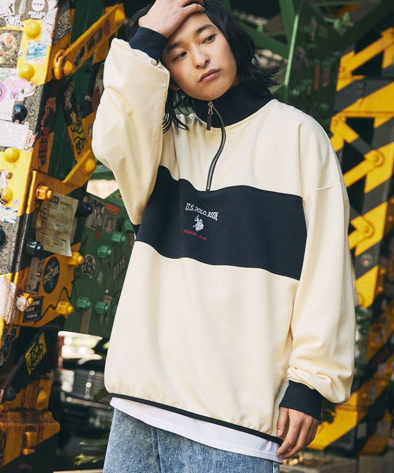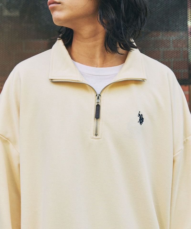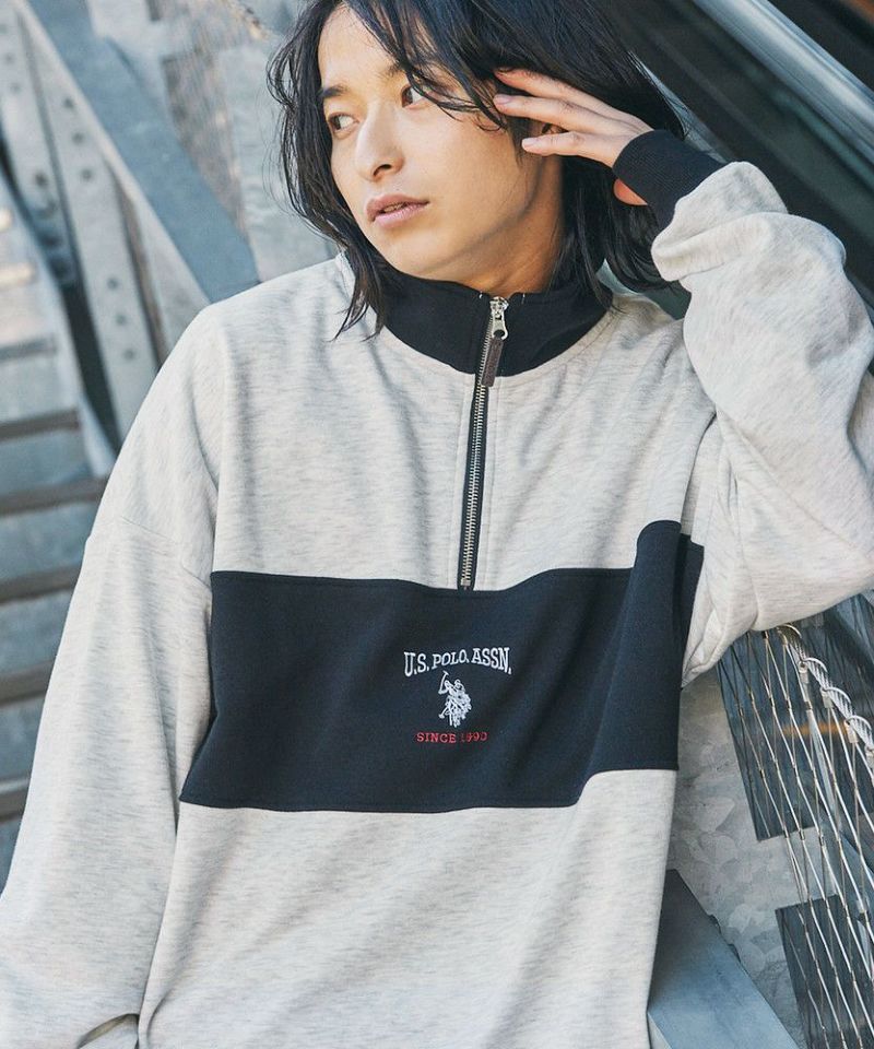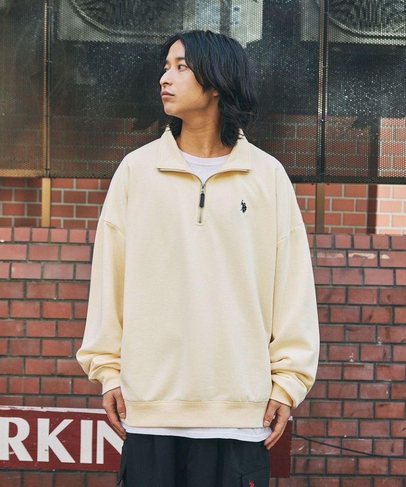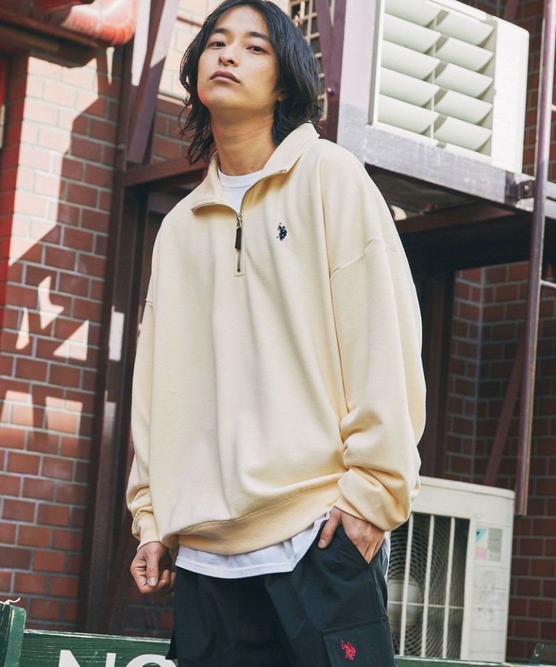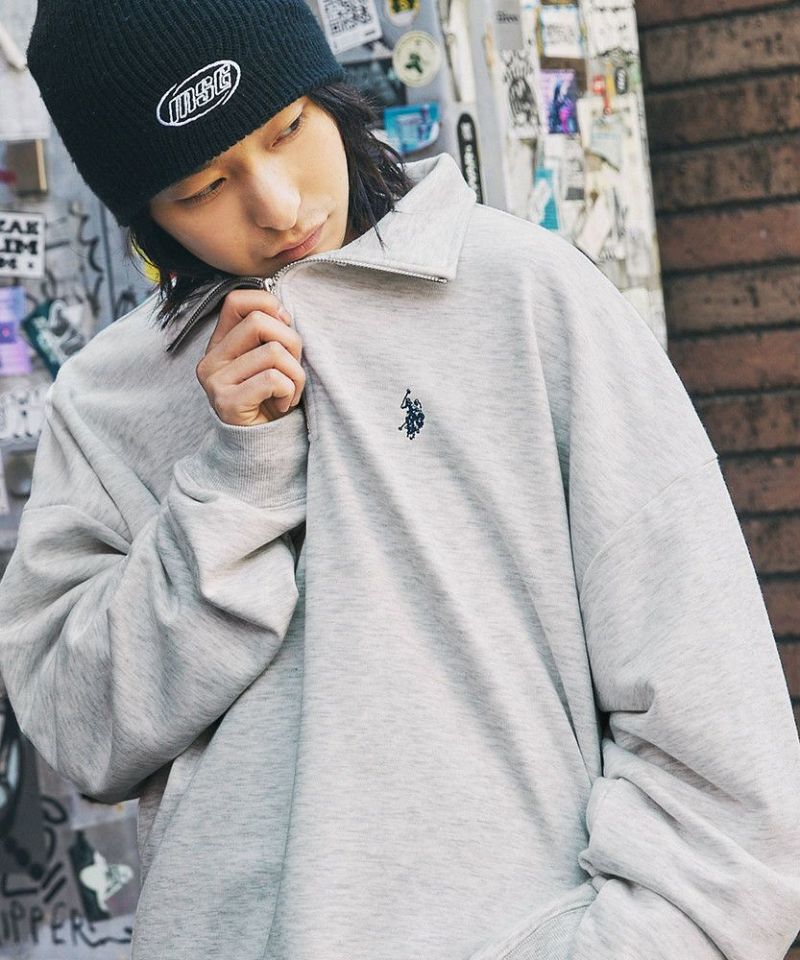 U.S. POLO ASSN. 別注 ワンポイントロゴ刺繍スタントネックスウェットハーフジップ ビッグシルエット