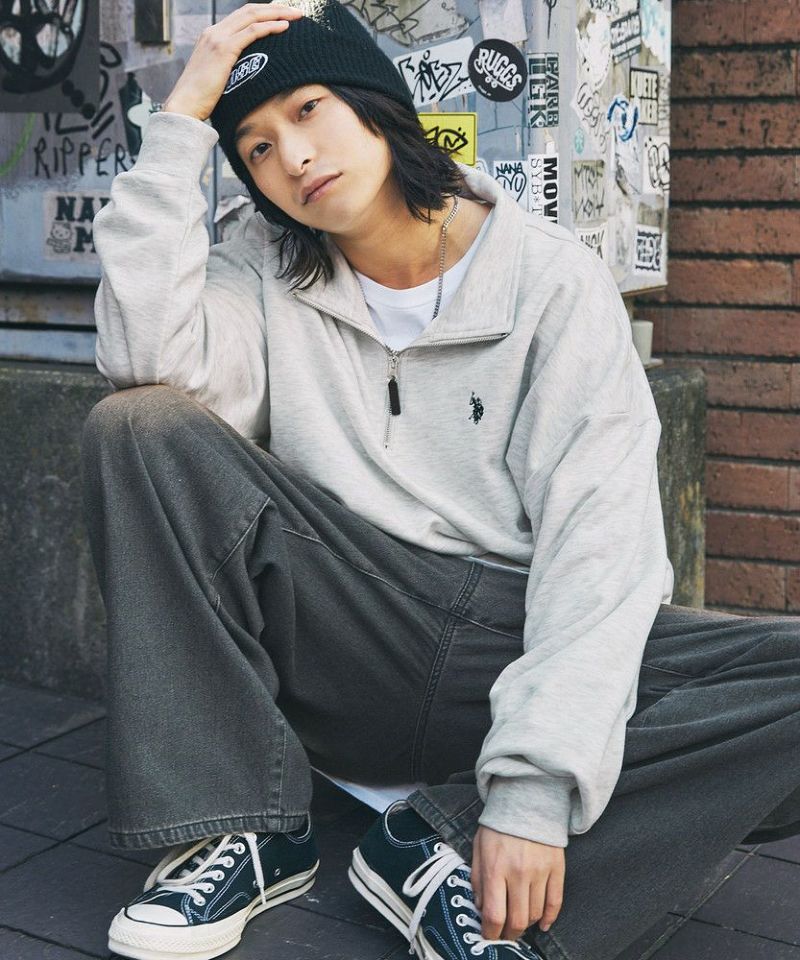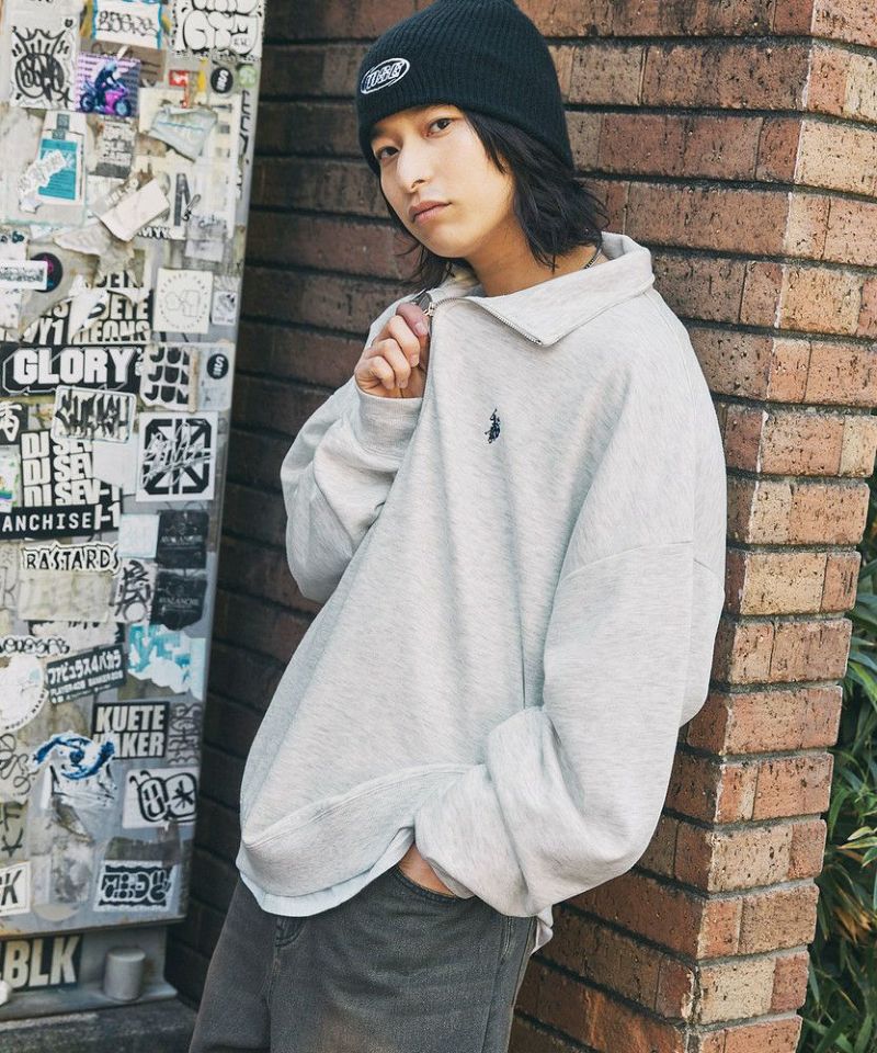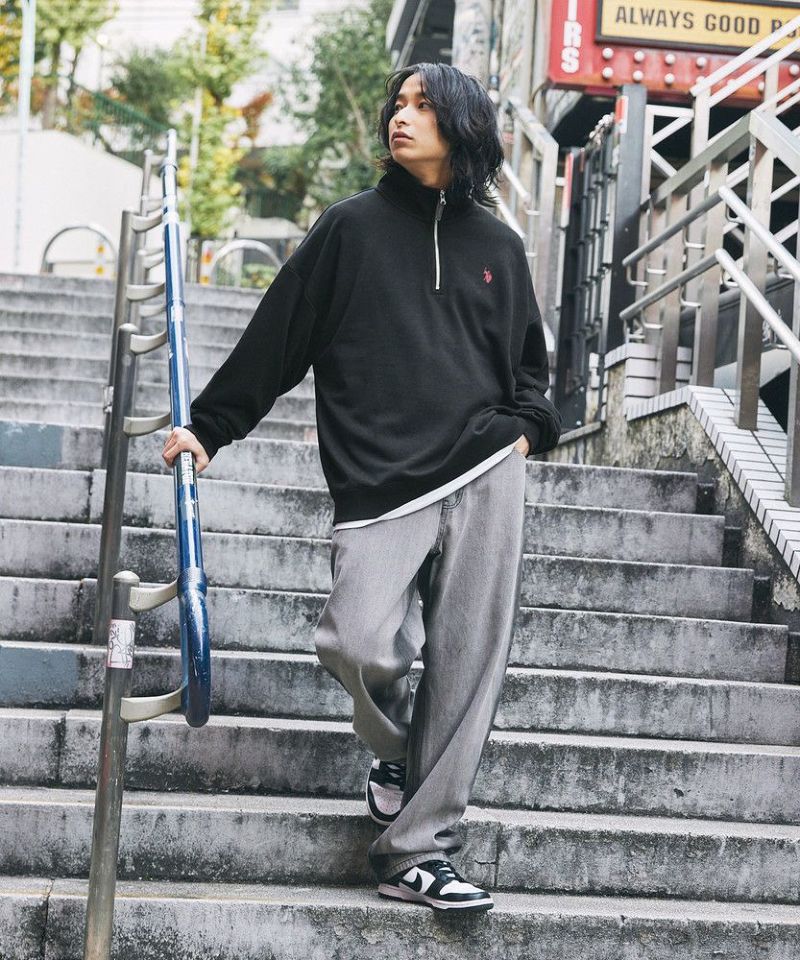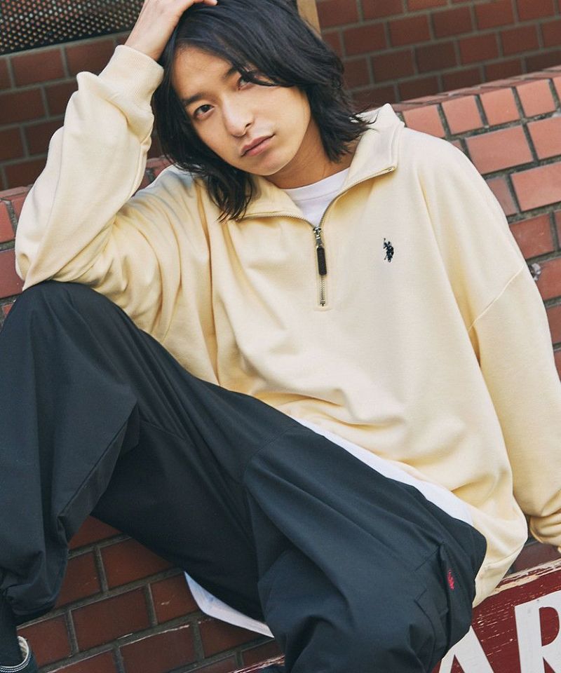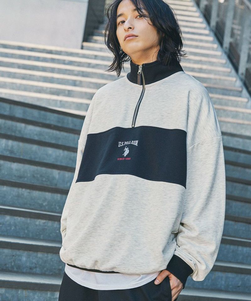 U.S. POLO ASSN. 別注 ワンポイントロゴ刺繍スタントネックスウェットハーフジップ ビッグシルエット