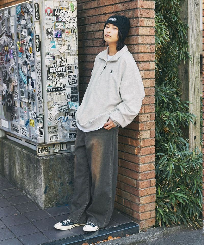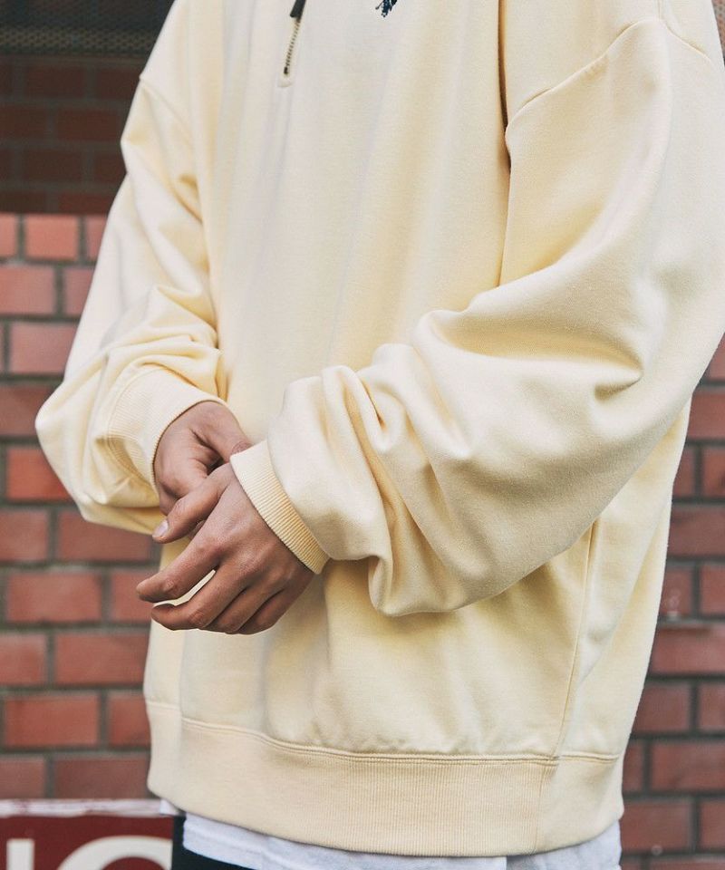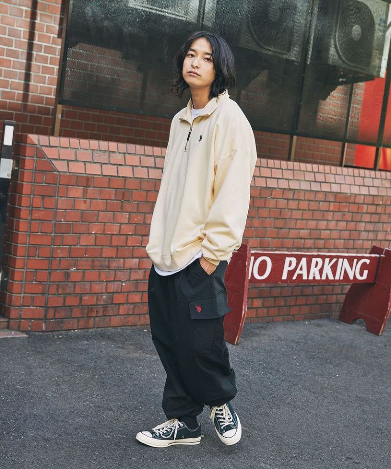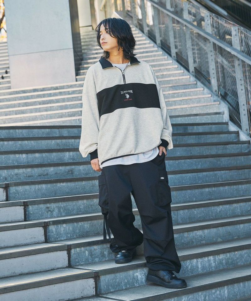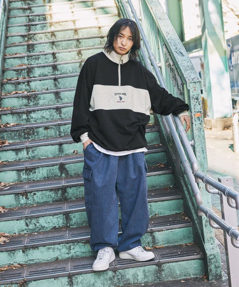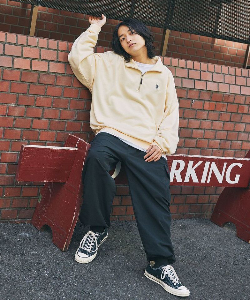 U.S. POLO ASSN. 別注 ワンポイントロゴ刺繍スタントネックスウェットハーフジップ ビッグシルエット
