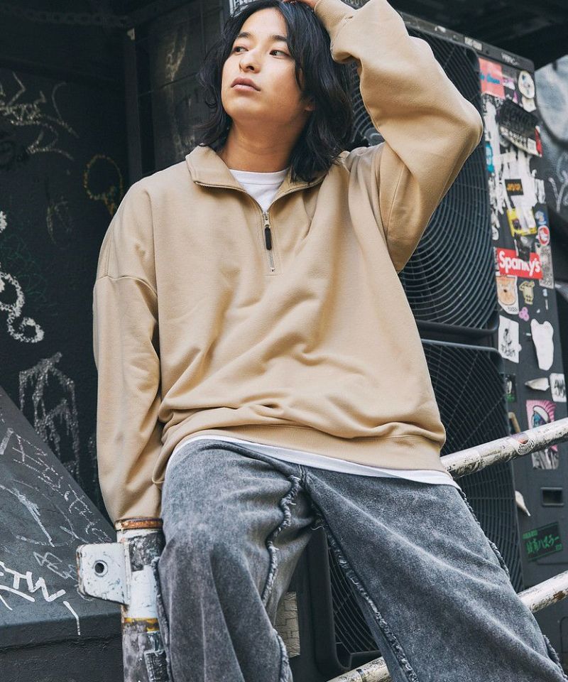 【U.S. POLO ASSN.】から今季トレンドのハーフジップスウェットが登場。ゆったりとしたオーバーサイズで流行りの着こなしが完成します。ジップを閉めてネック部分を立たせると首元をしっかり覆ってくれて防寒対策に。袖はリブ仕様で、バルーンスリーブのゆったりとしたサイジングが今っぽさをプラス。前立てファスナーのストラップがさり気ないアクセントとなります。