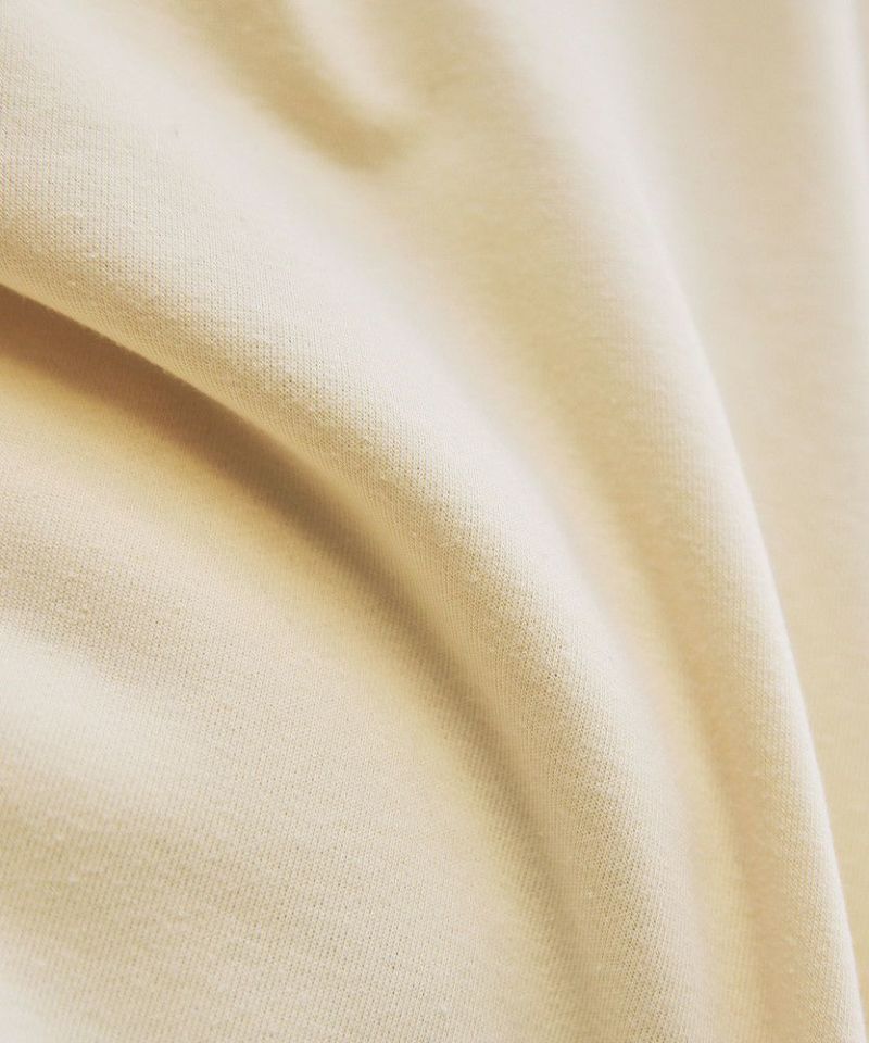 綿とポリエステル素材の裏毛生地を使用したループ状のスウェット素材。柔らかい肌触りで、肌馴染の良い快適な着心地です。