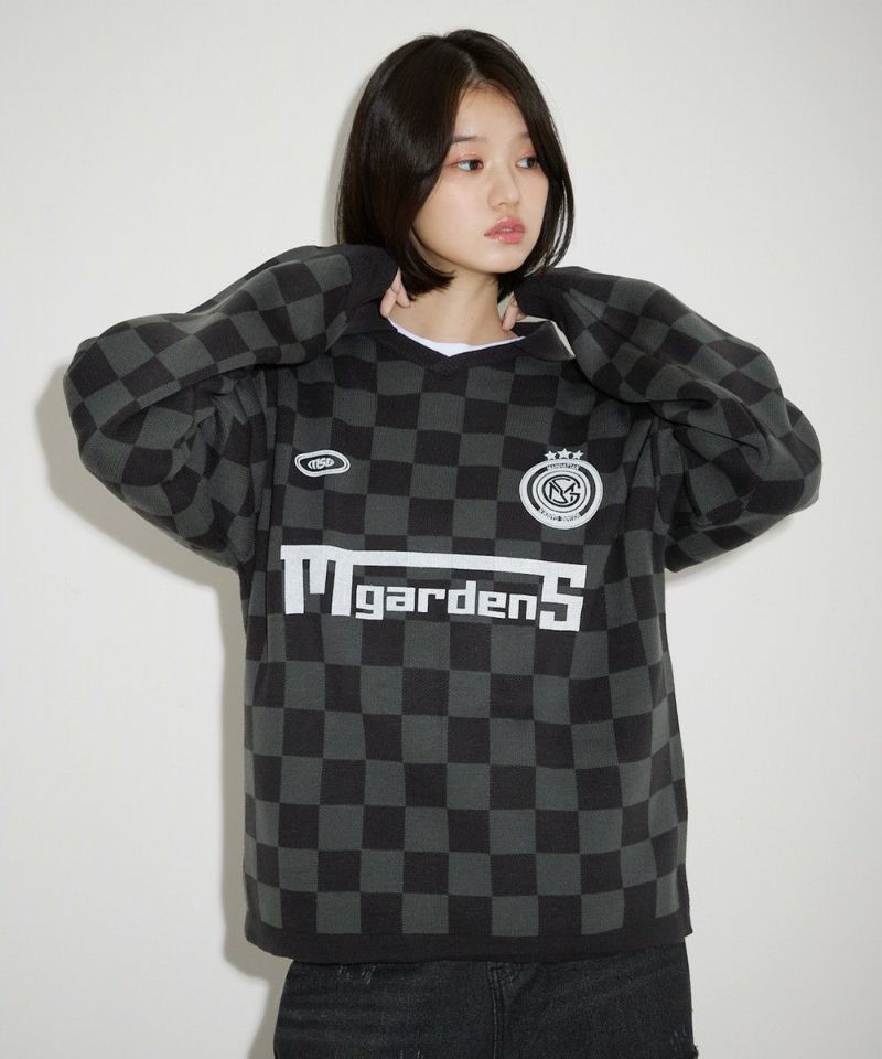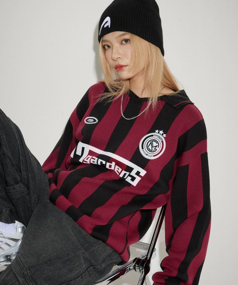 オーバーサイズ襟配色ジャガードゲームシャツニット ユニフォームニット