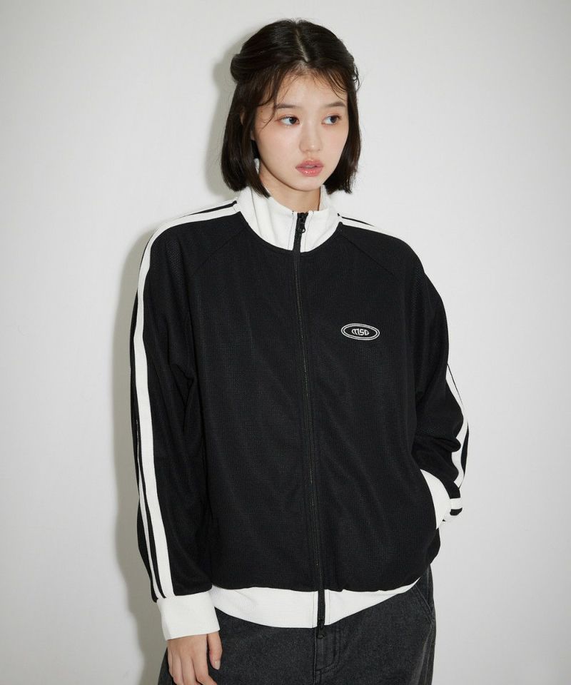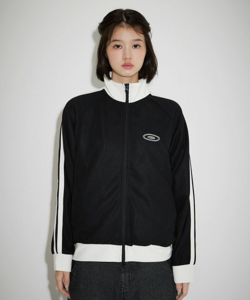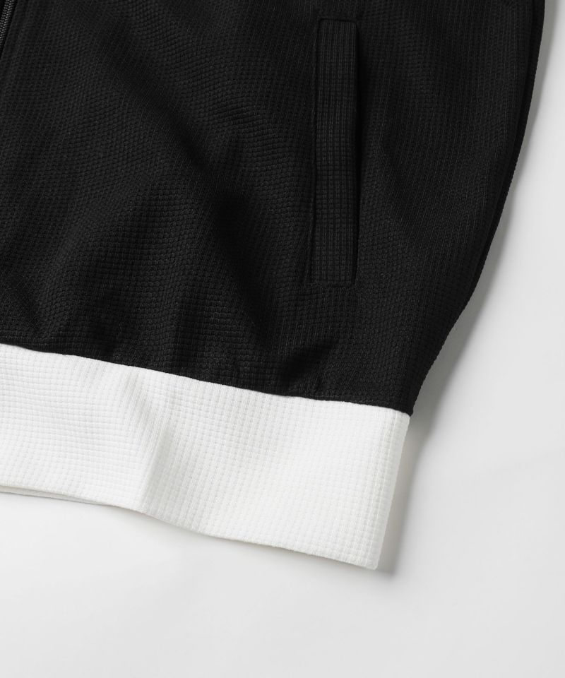 スポーツアイテムのトラックジャケットをワッフル素材でデザインしたことで、カジュアル、ストリート、古着ミックスにも取り入れ易い万能アイテムに仕上げました。ジップを閉じたトップス使いだけでなく、さっと羽織る春のライトアウターとしてもおすすめです。シンプルなボトムスと合わせるだけで今っぽいラフなスタイルが完成します。