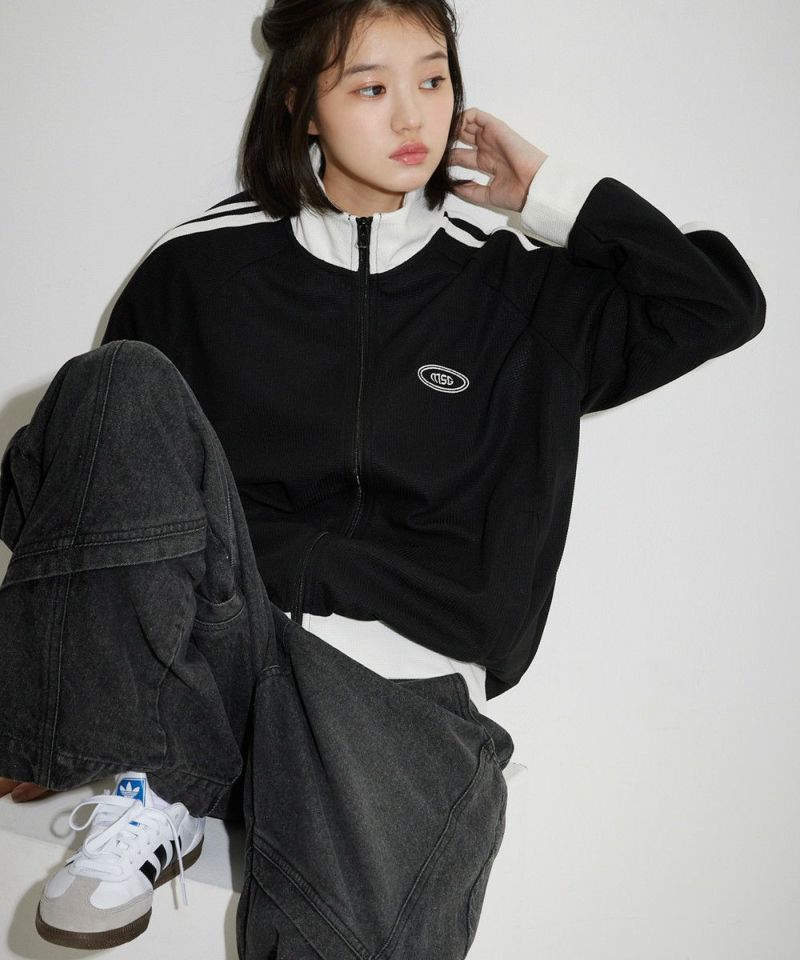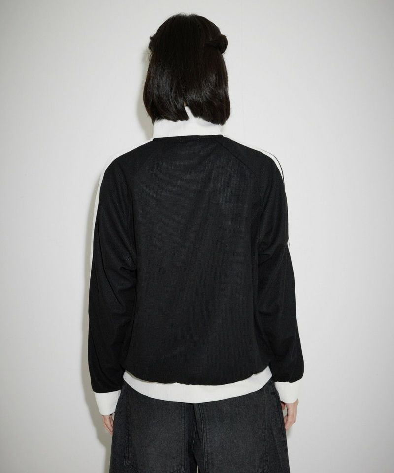 立体感のあるワッフル素材で作られたトラックジャケット。凸凹とした表情が特長のワッフル素材を使用することで、定番のトラックジャケットをブラッシュアップしました。コントラストを効かせた配色やスポーティーな袖のラインがアクセントになり、1枚でトレンド感のある着こなしを演出します。胸元にはブランドロゴ刺繍が施されており、さり気なく目を引くポイントに。フロントジップには上下どちらからも開けられるダブルジップを採用しており、開け方次第で幅広い着こなしを楽しめます。ラグランスリーブデザインのルーズシルエットで、今年らしい抜け感に加えリラックス感も表現しました。メンズだけでなく、レディースもメンズライクに着こなせるユニセックスアイテムです。