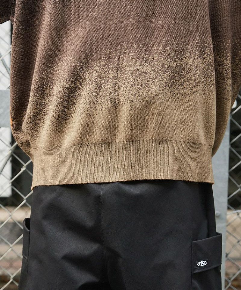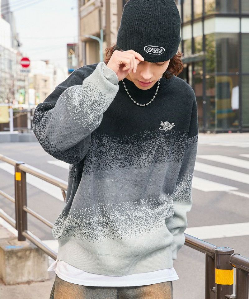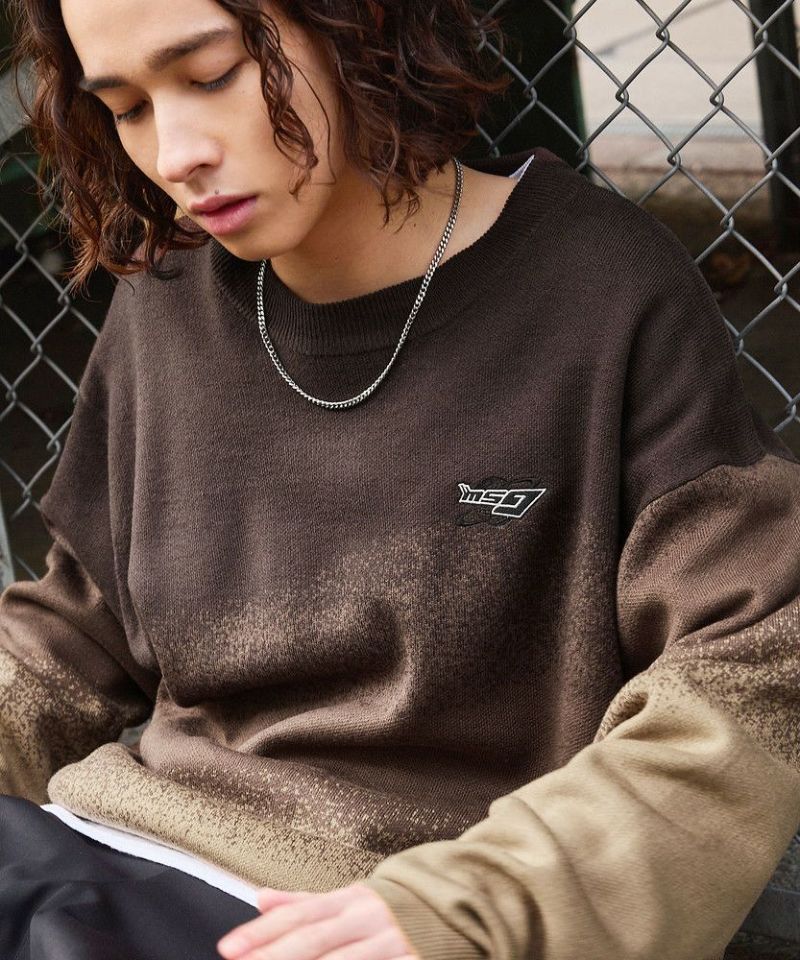 ジャガードニットによるグラデーションパターンが新鮮なオーバーサイズニット。胸元には「MSG」のブランドロゴ刺繍が施されており、ワンポイントに。