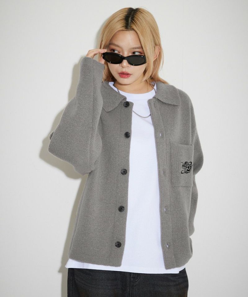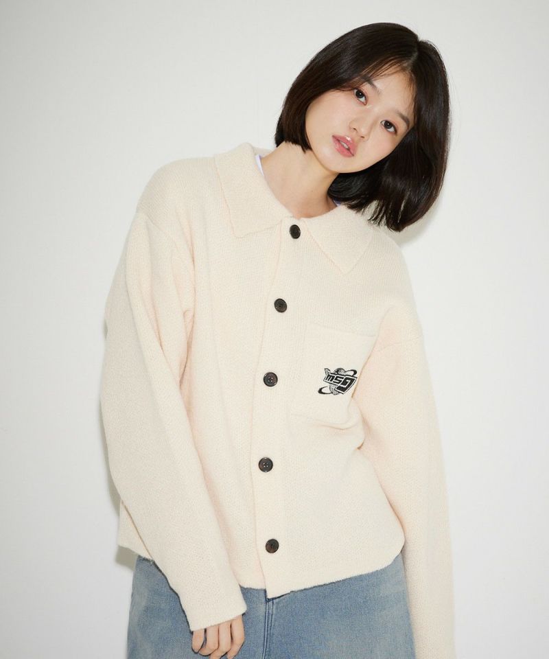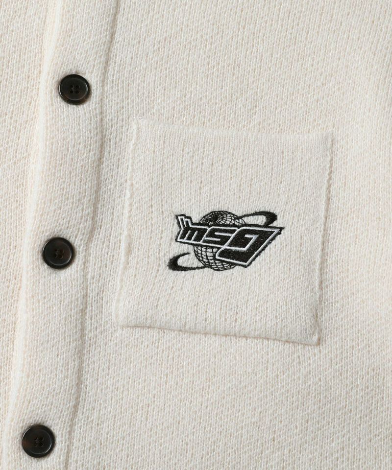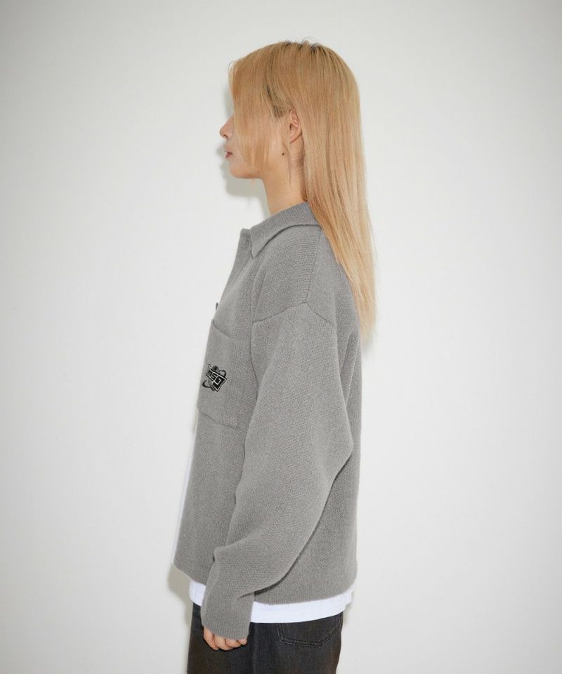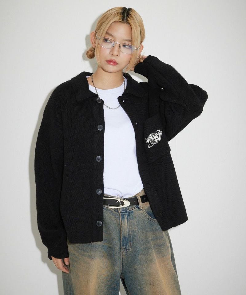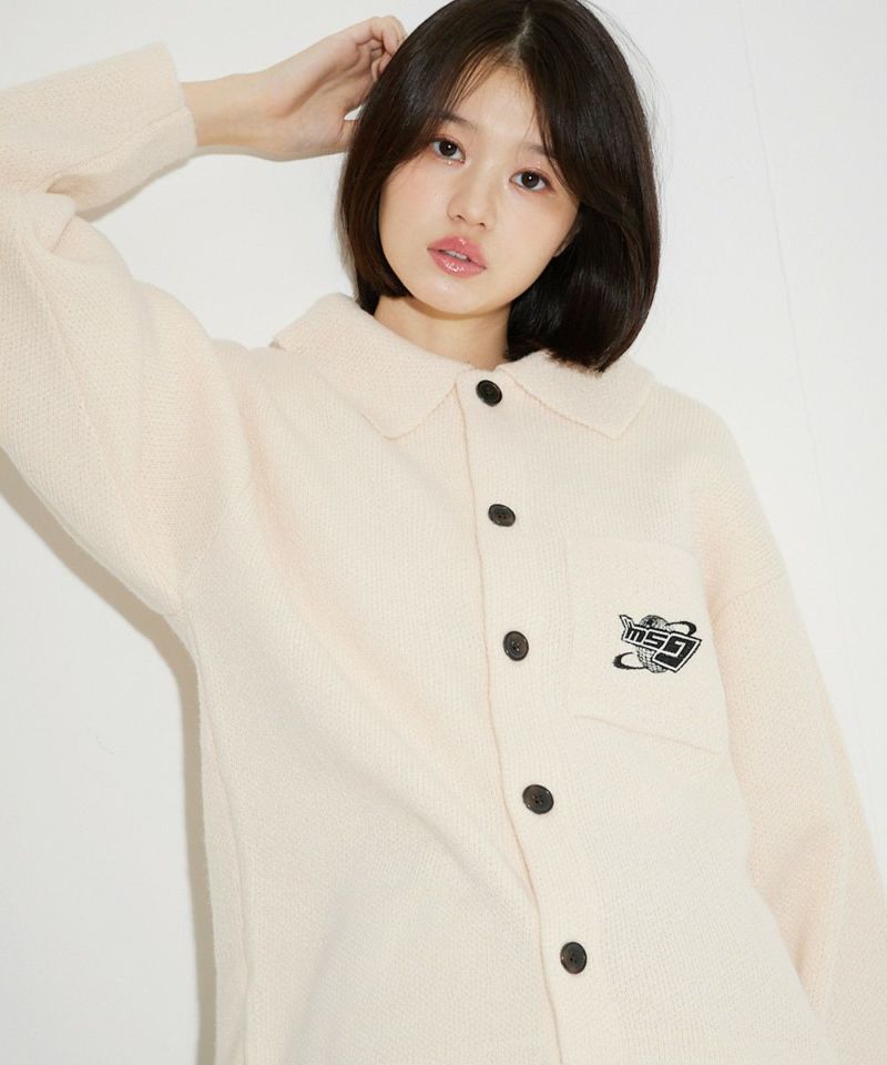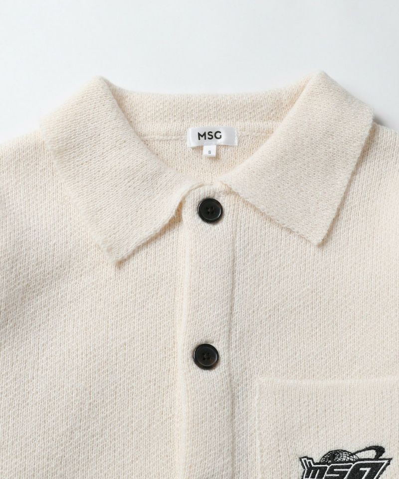 レトロな雰囲気のポロ襟デザインに、ブランド刺繍がアクセントのニットジャケット。一枚着でも、ボタンを外してジャケットスタイルでも着こなせる汎用性の高いデザインです。襟付きのポロデザインで、胸ポケットと後身頃に施されたブランドロゴ刺繍がポイント。ゆるっとルーズなサイジングで抜け感のあるシルエットも今っぽい一着です。レディース、メンズ問わずお使い頂けるユニセックスアイテムです。