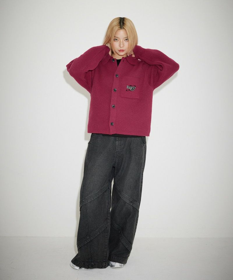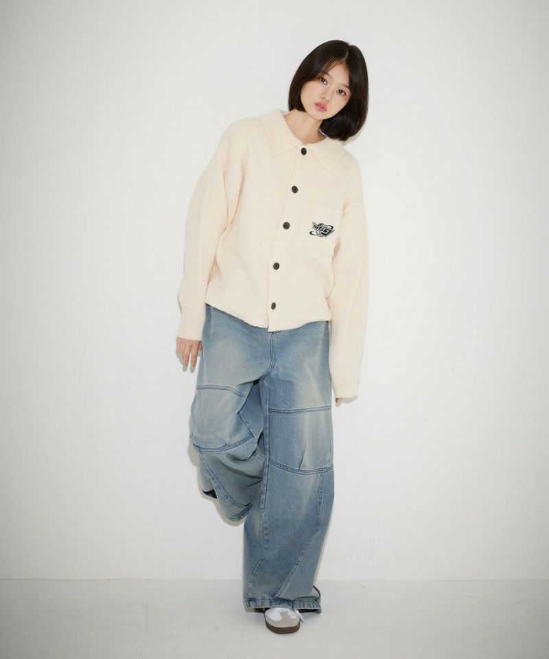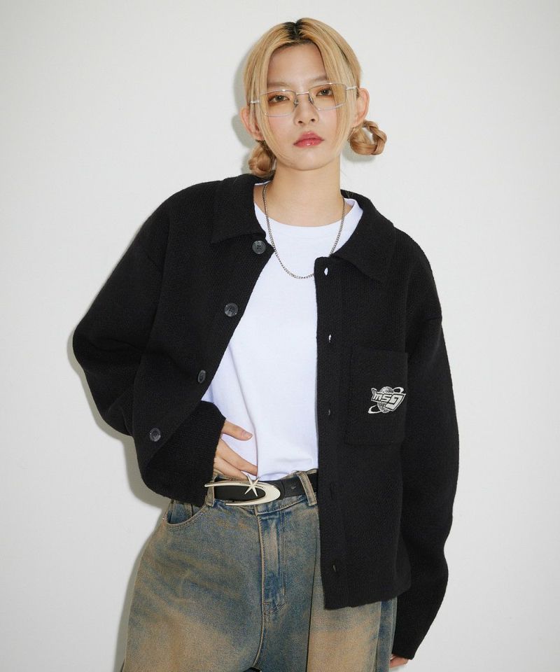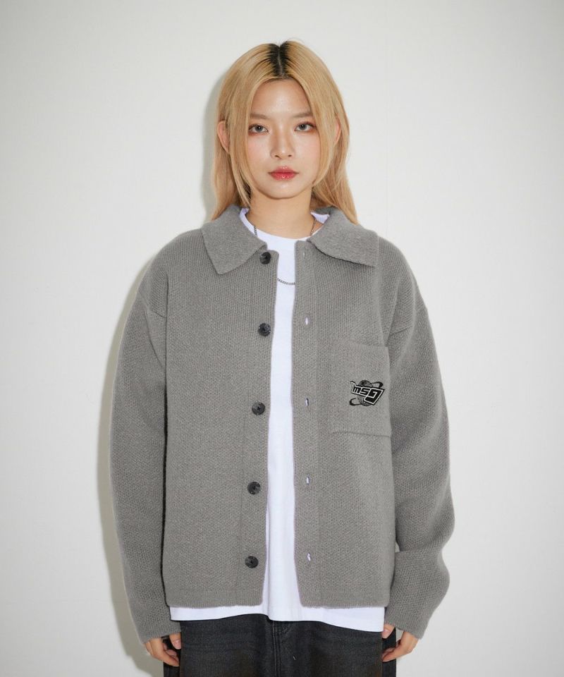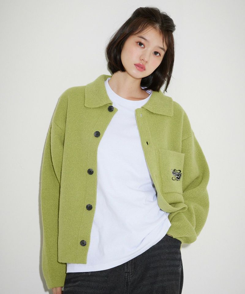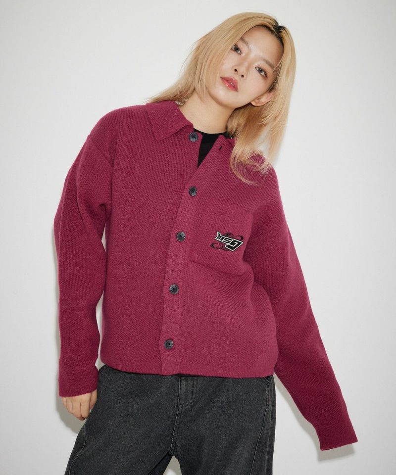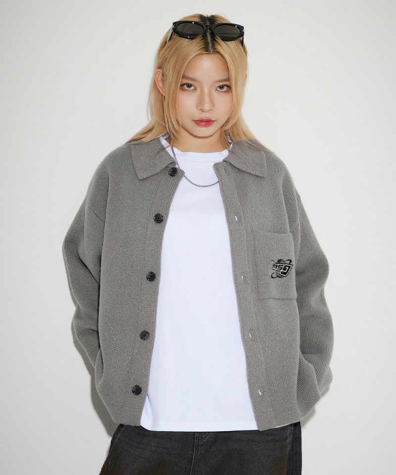 レトロな雰囲気のポロ襟デザインに、ブランド刺繍がアクセントのニットジャケット。一枚着でも、ボタンを外してジャケットスタイルでも着こなせる汎用性の高いデザインです。襟付きのポロデザインで、胸ポケットと後身頃に施されたブランドロゴ刺繍がポイント。ゆるっとルーズなサイジングで抜け感のあるシルエットも今っぽい一着です。レディース、メンズ問わずお使い頂けるユニセックスアイテムです。