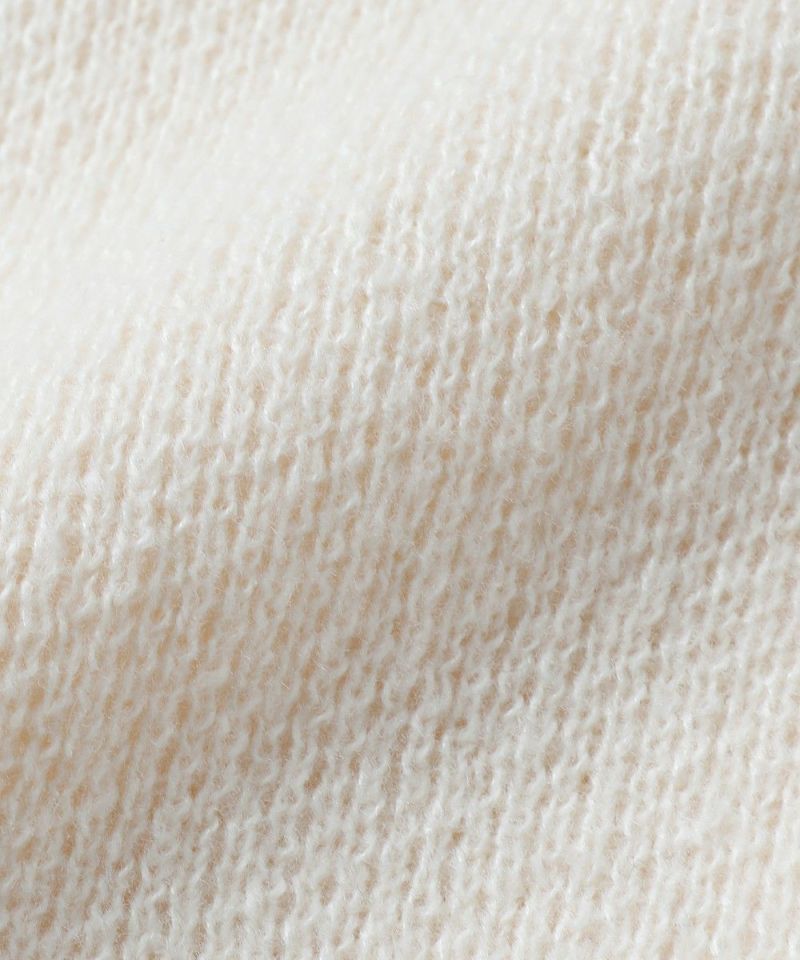 ポリエステル100%のチクチクしにくいニット素材を使用。ふんわりとしたタッチで、軽くてさっと羽織れる一着です。