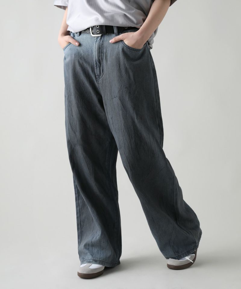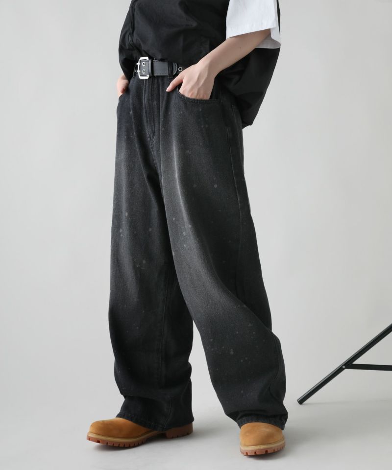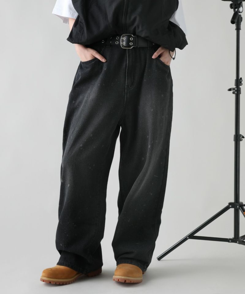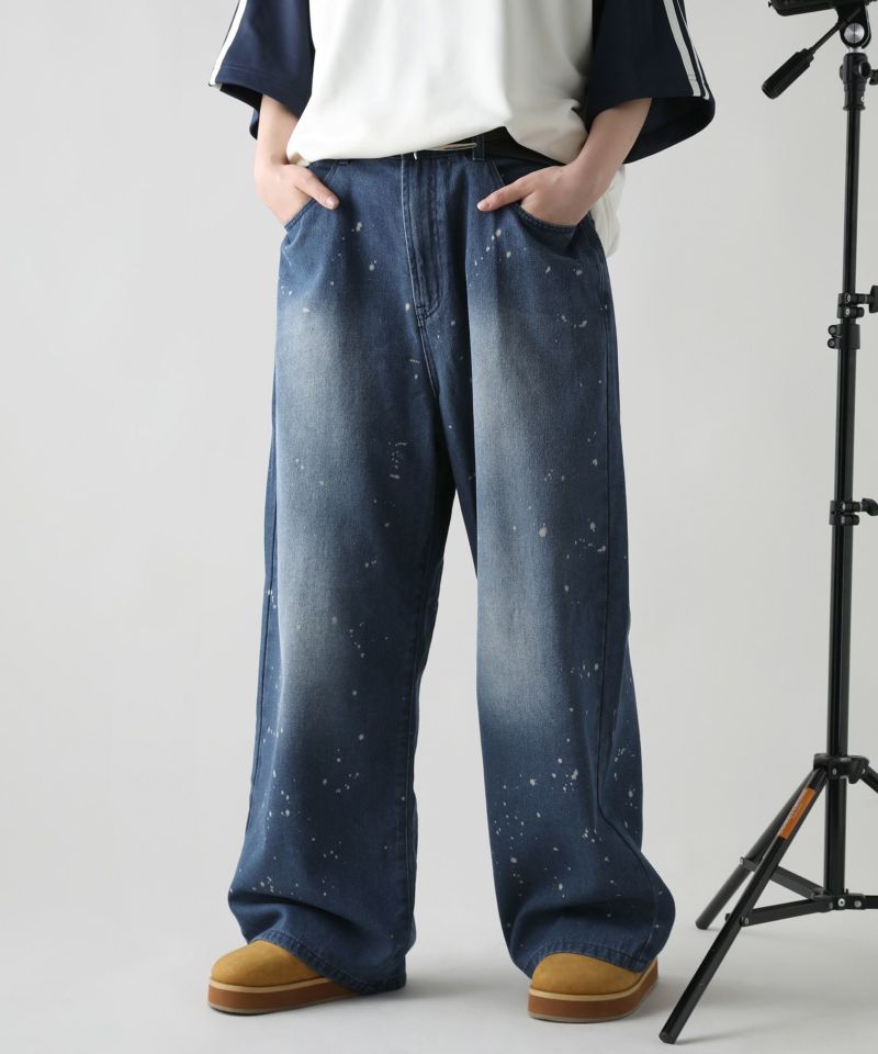 マルチ加工グランジバギーデニムパンツ ペイント加工/ペンキ加工