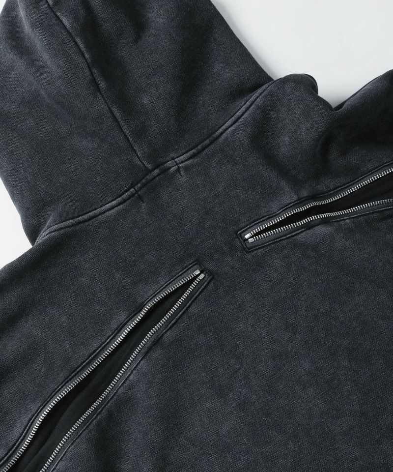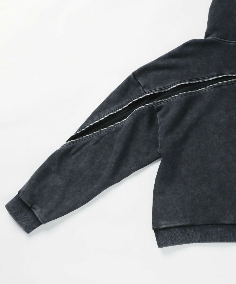 ・バックから袖にかけて大胆に施されたジップ着こなしのアクセントに。