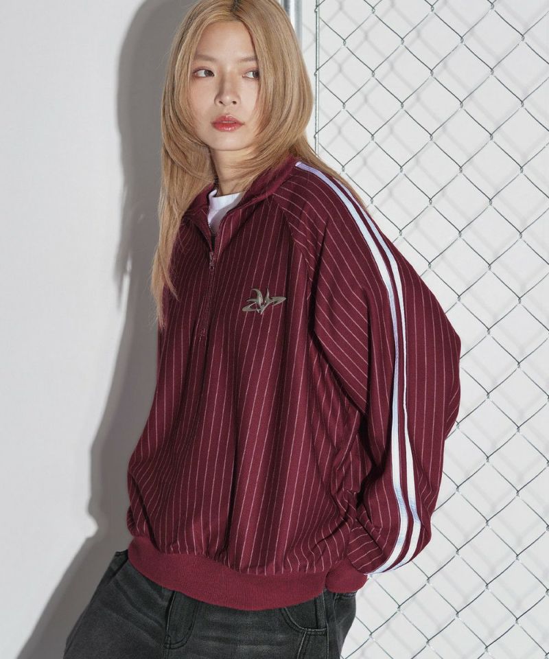 ・サイドラインがスポーティーな印象のハーフジップトラックジャケット。