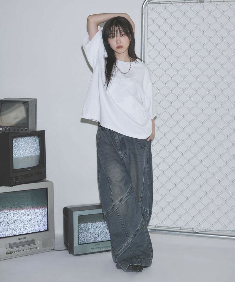 ・やや短めの丈感と、程よくゆとりのあるボックスシルエットが今っぽさを演出します。