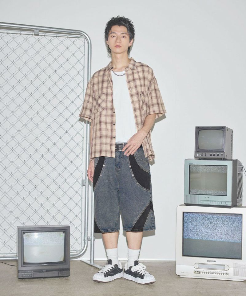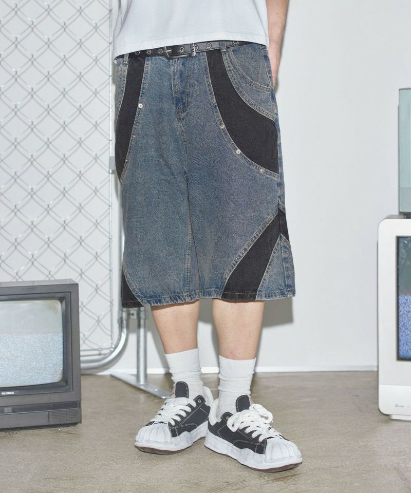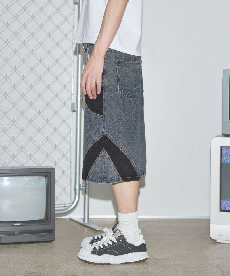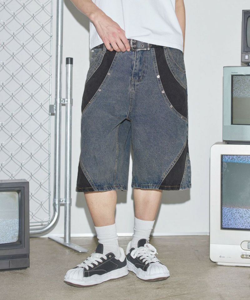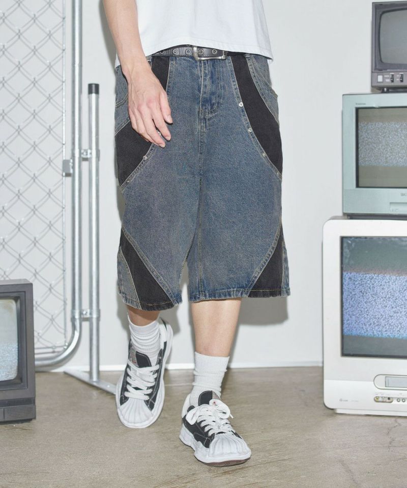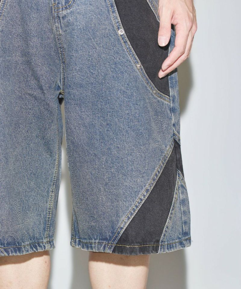 切替バギーデニムショーツ【UNISEX】