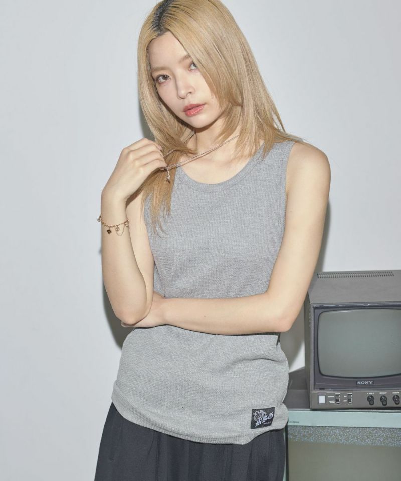 ワンポイントワッフルタンクトップ