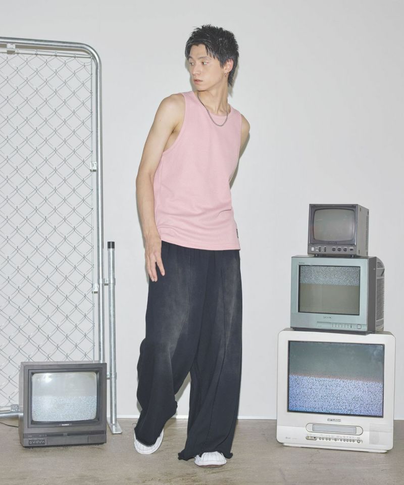 ・凹凸のあるワッフル生地が肌離れよく、快適な着心地を叶えるタンクトップ。