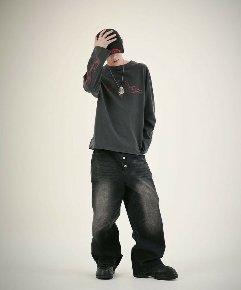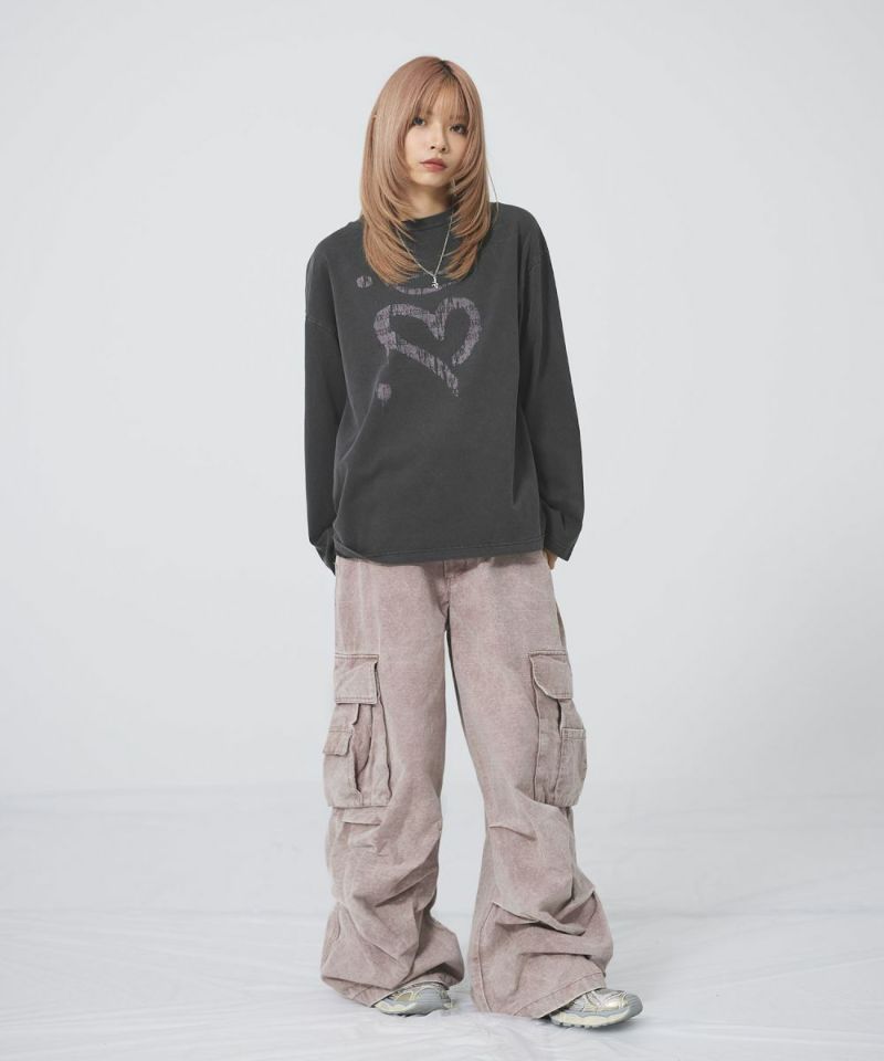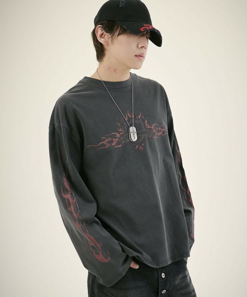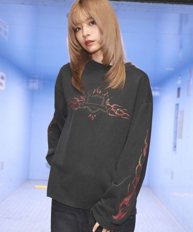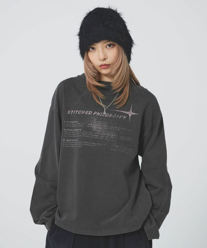 ルーズシルエットアソートグラフィックヴィンテージライクロングTシャツ