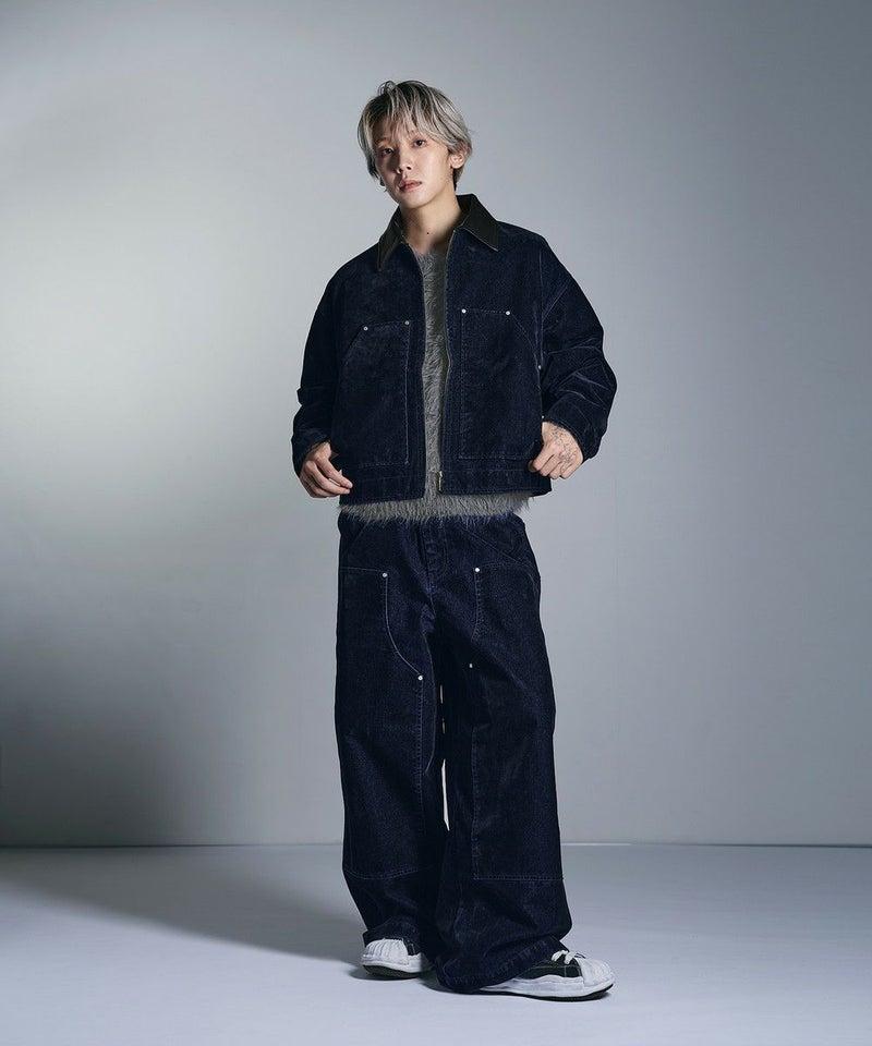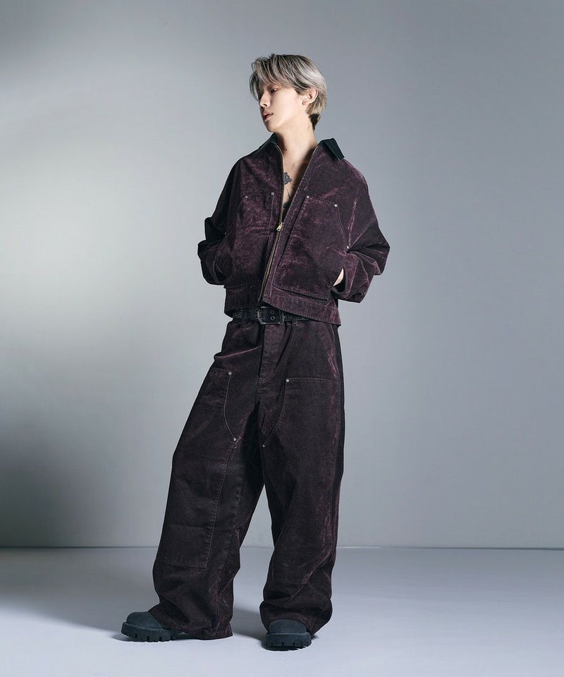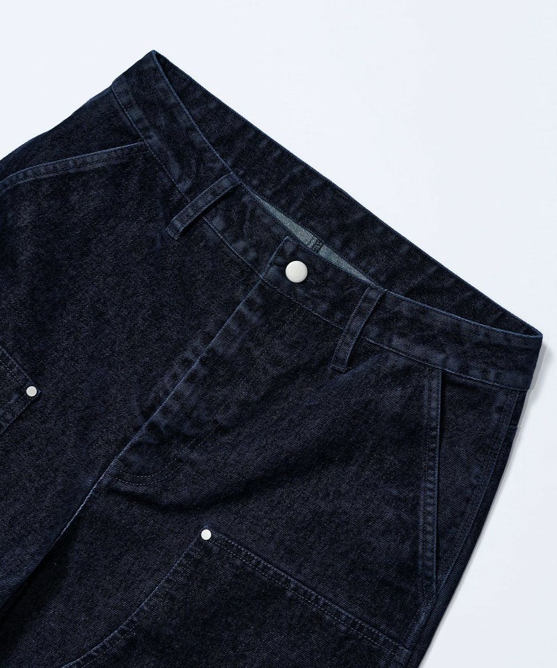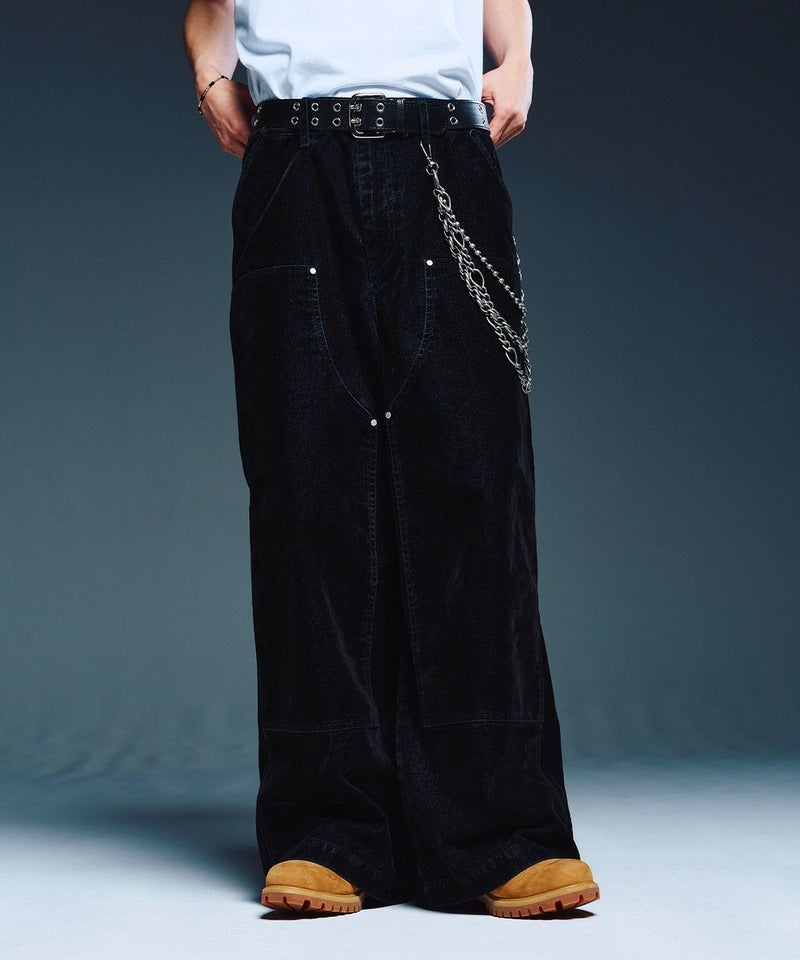 【SET-UP着用可能】ベルベットライクペインターダブルニーデニムパンツ