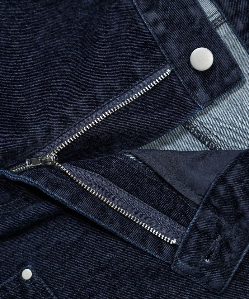 ・ベルベットのような上品な光沢感が特徴のデニム素材を使用したダブルニーパンツ。