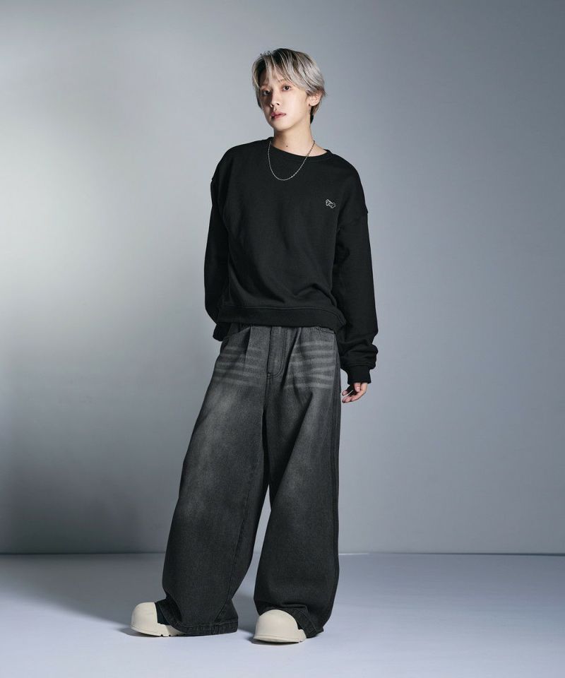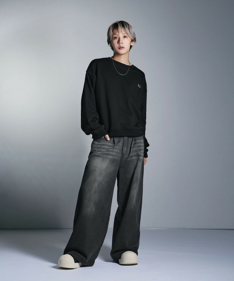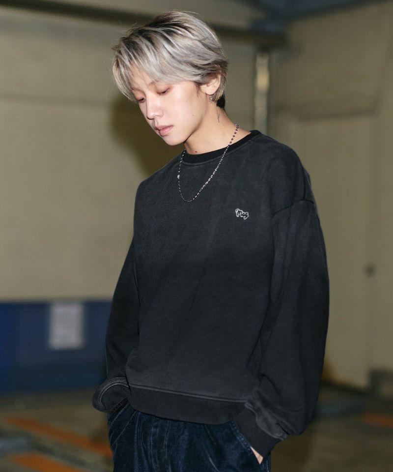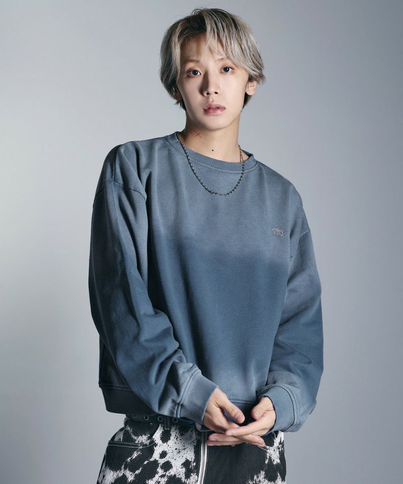 ・日焼けのような加工がこなれた雰囲気のクルーネックスウェット。
