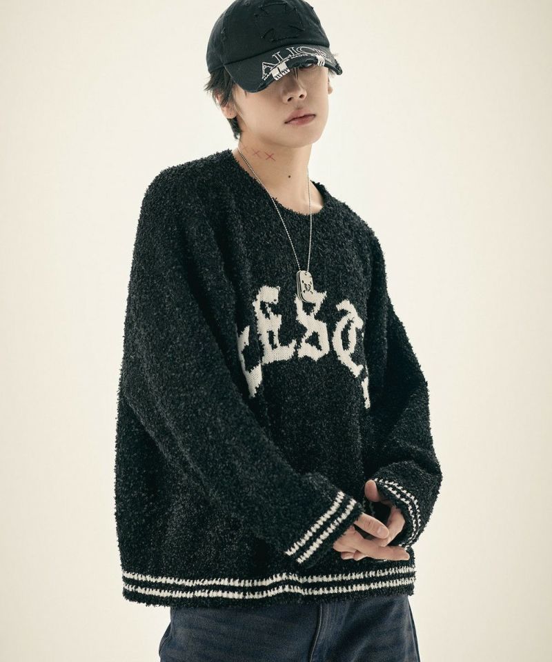 ・1枚でストリート感を演出できるデザインニットです。