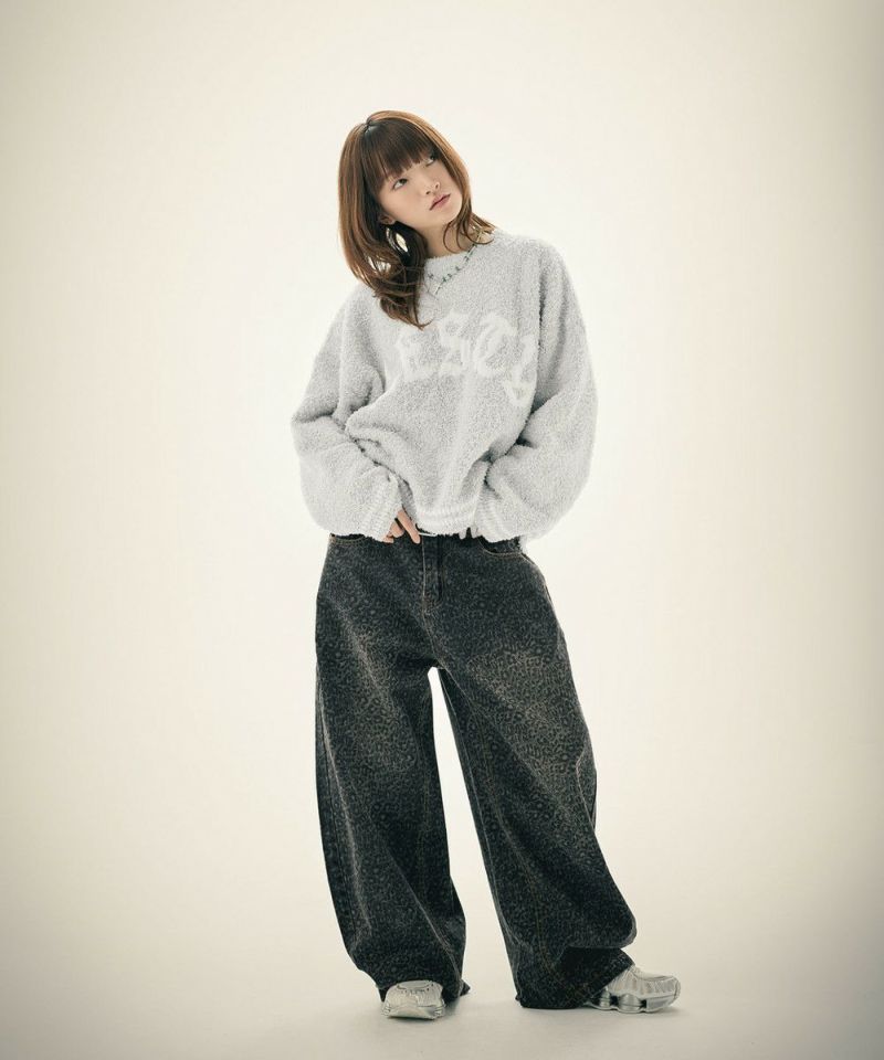 ・表面に立体感のあるリボンヤーンを使用した、存在感抜群のグラフィックニット。