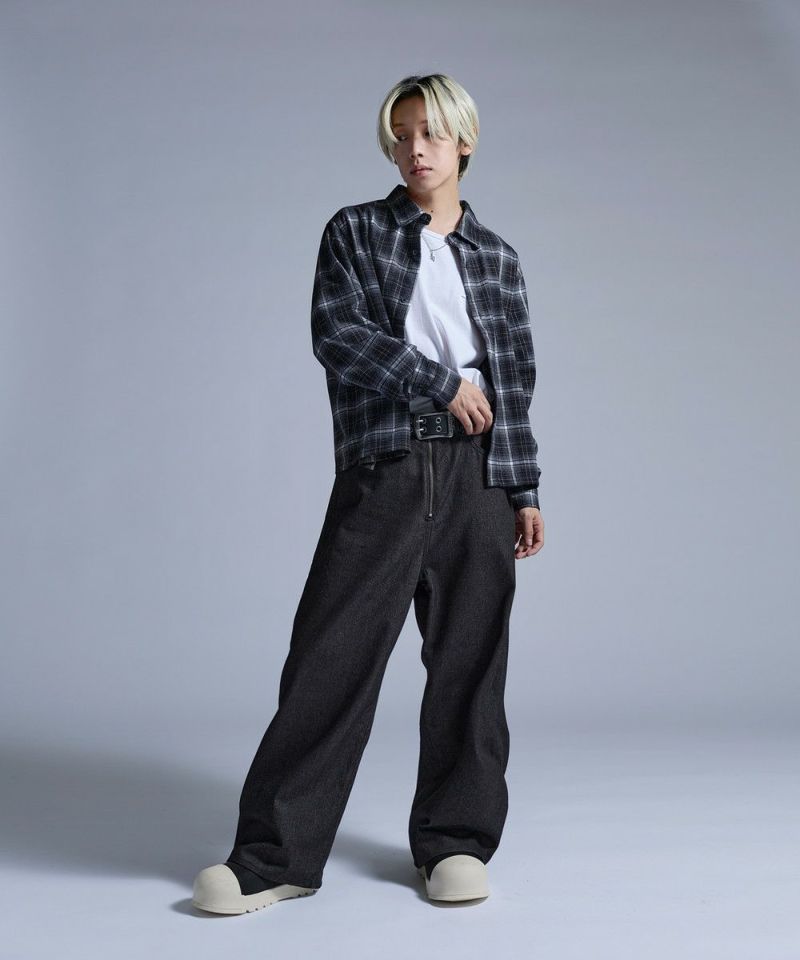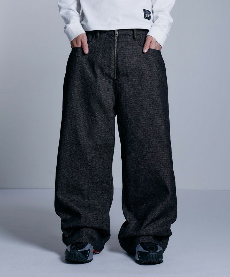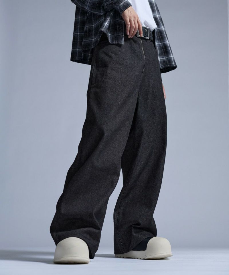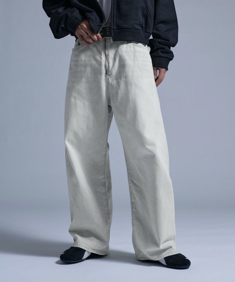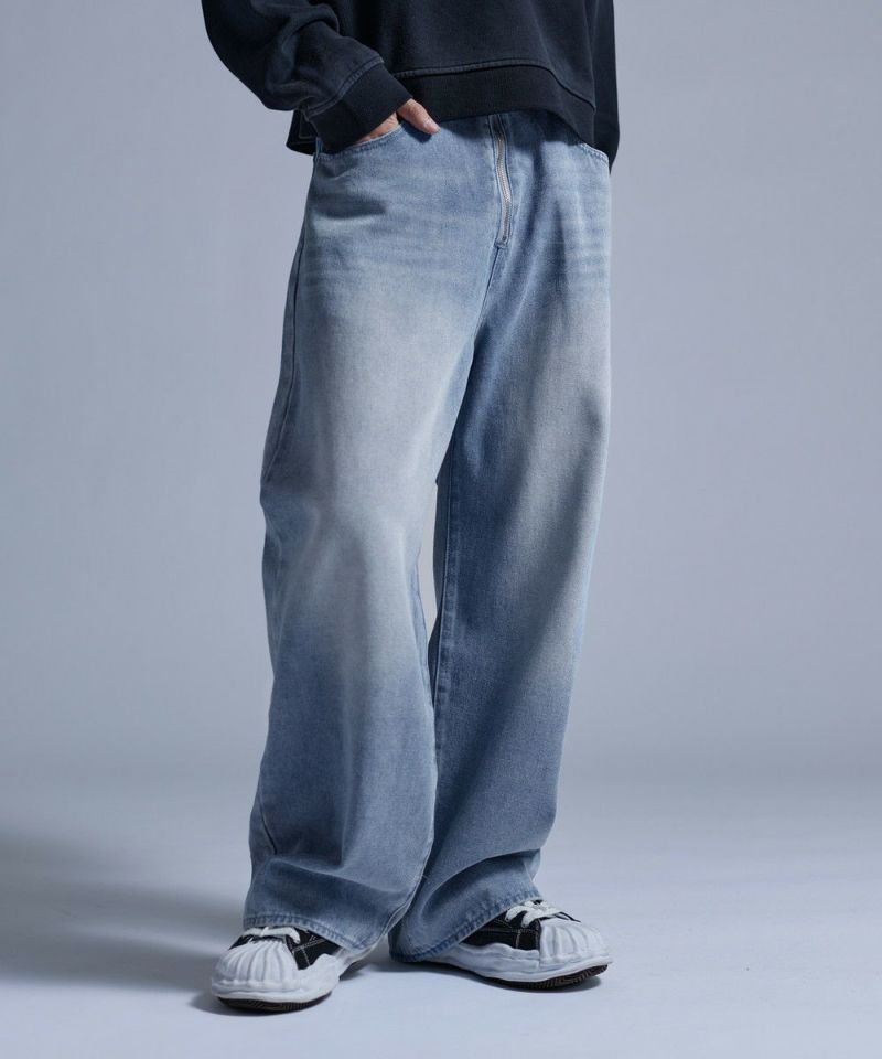 ・大胆なワイドシルエットとフロントのセンタージップが特徴的なバギーデニムパンツ。