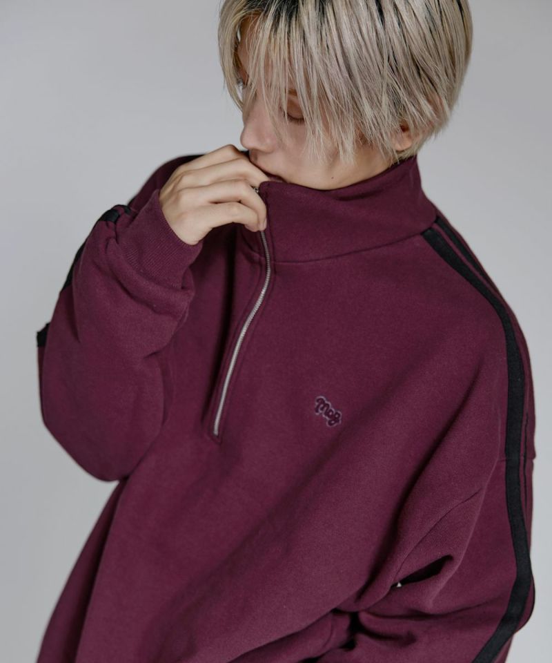 ・ハーフジップタイプのスウェット地プルオーバー。