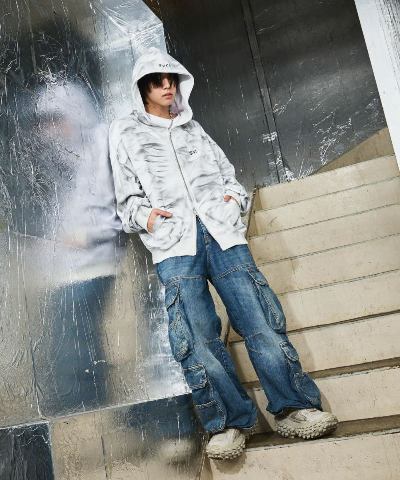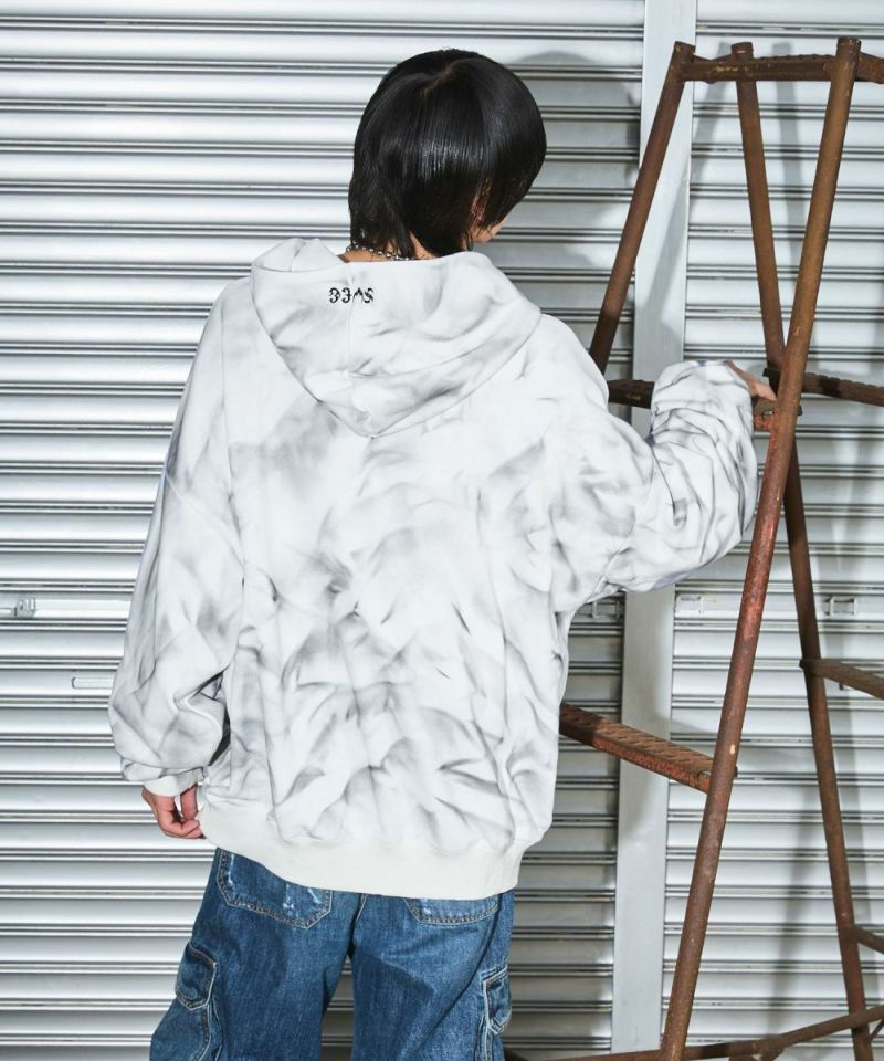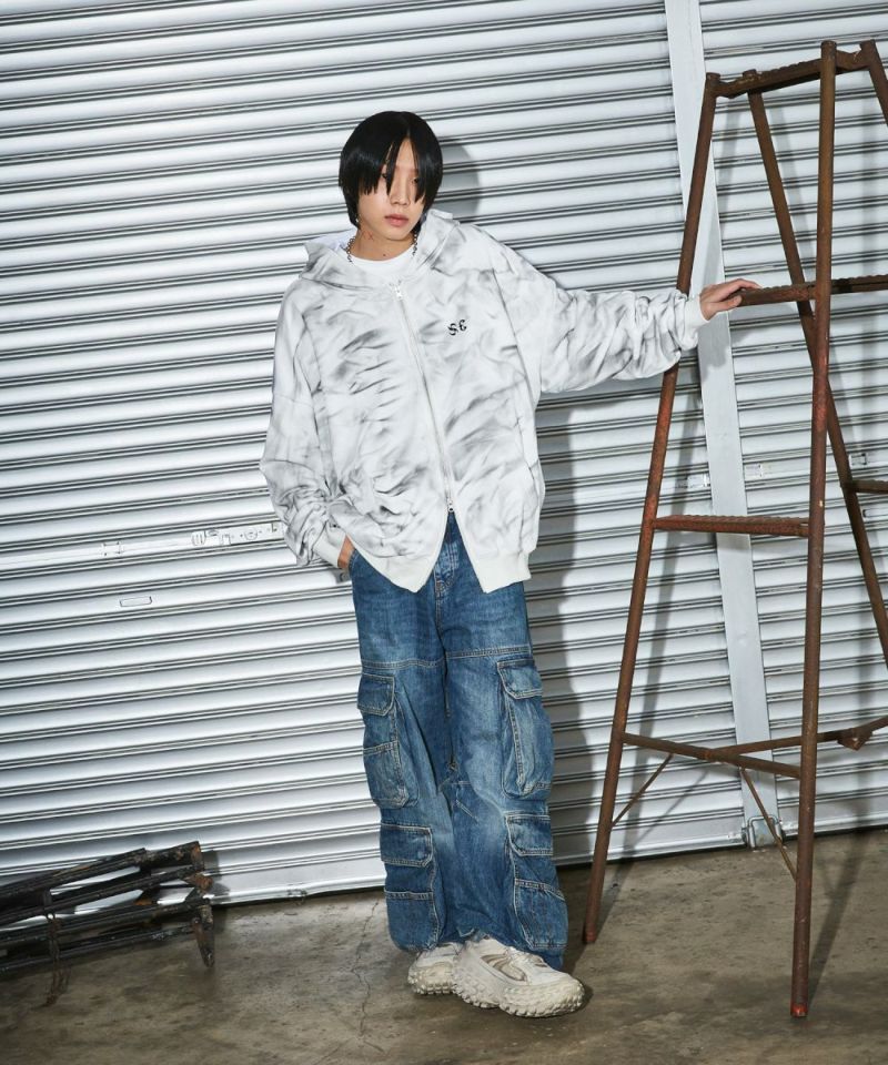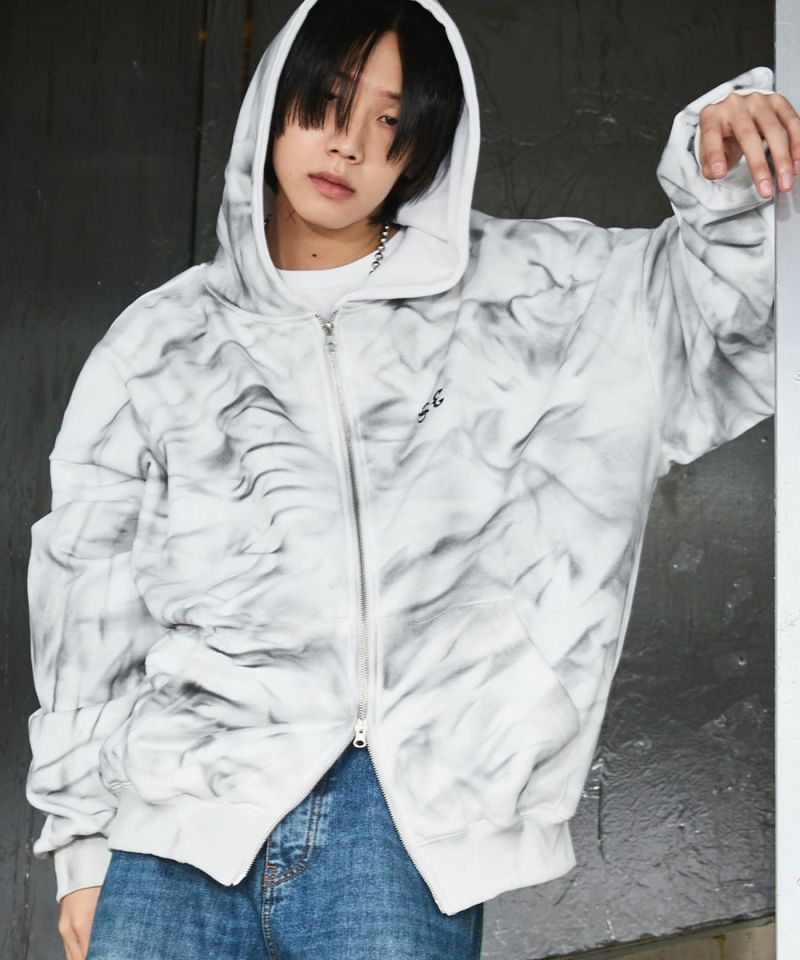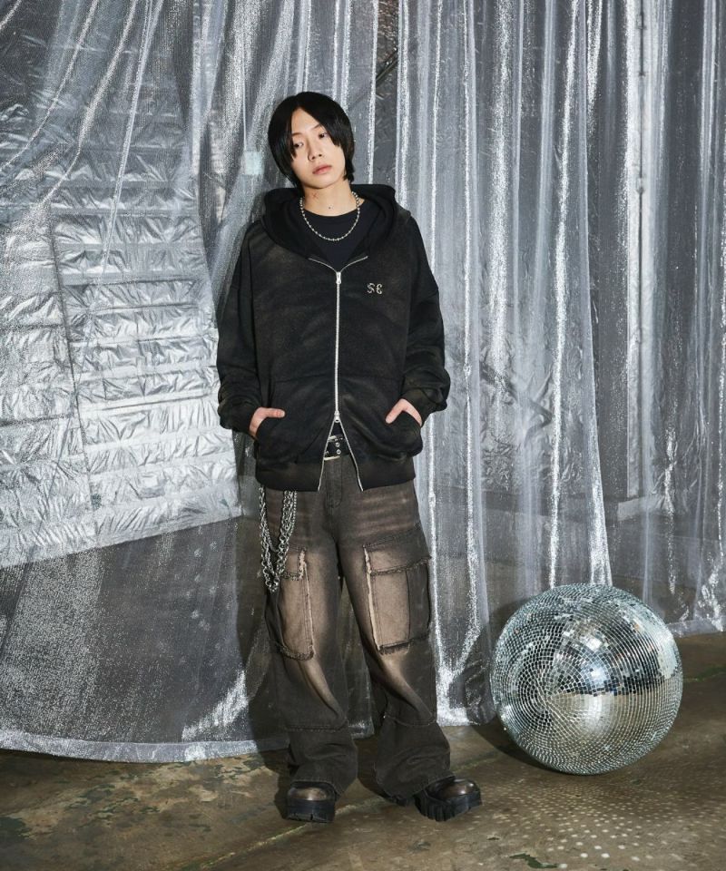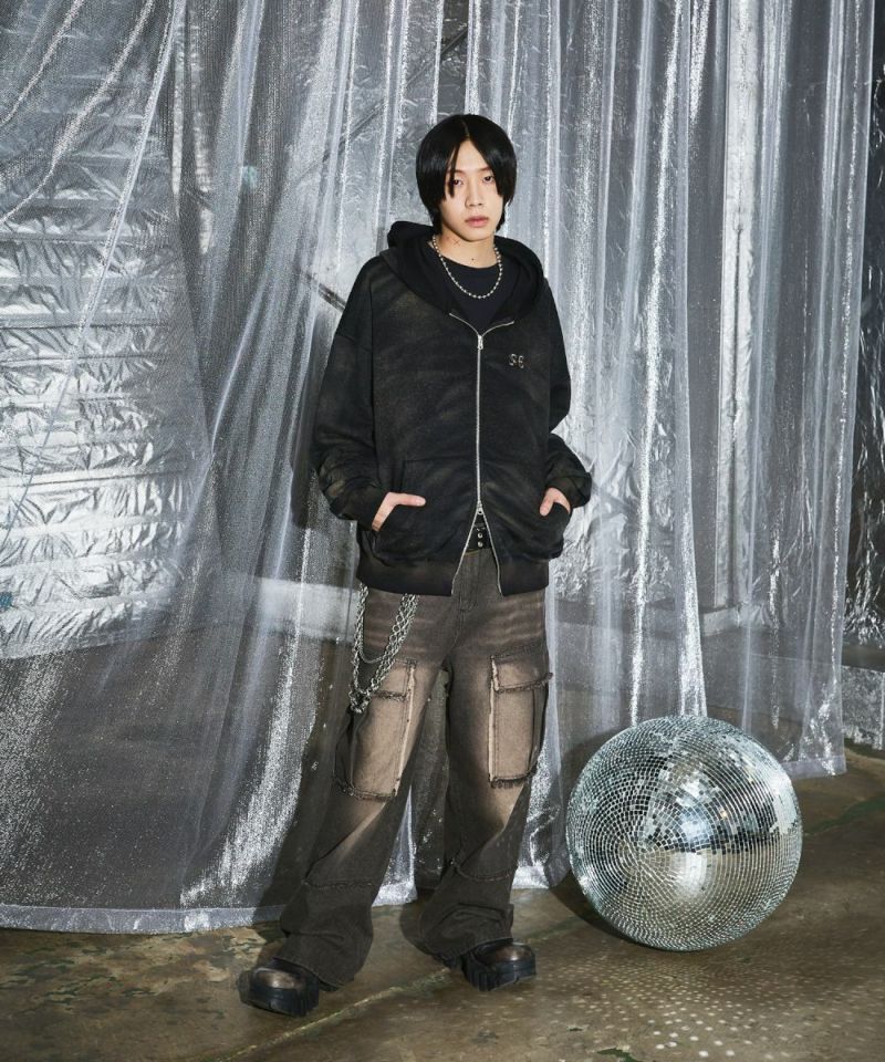 ゆったりとしたシルエットのダブルジップパーカー。フードのフロントと左胸にブランドロゴが刺繍されているのが、アクセントに。羽織りとして着用するのはもちろん、ダブルジップならではのインナーとのレイヤードをお楽しみいただけるアイテムになっております。アーバンな雰囲気を残しつつ、ブリーチ加工を施したブラックとホワイトの2色展開。また、生地は厚すぎず薄すぎず、ロングシーズンにわたって快適に着用いただけます。ユニセックスで着用可能です。