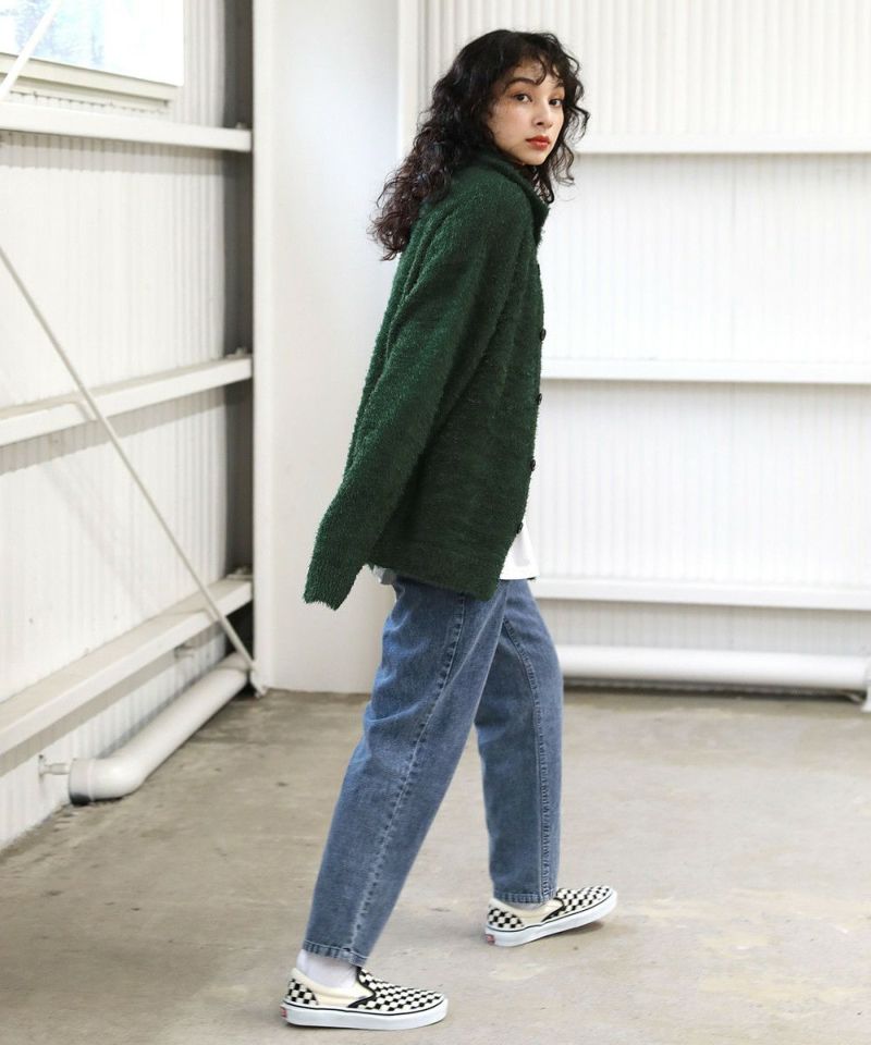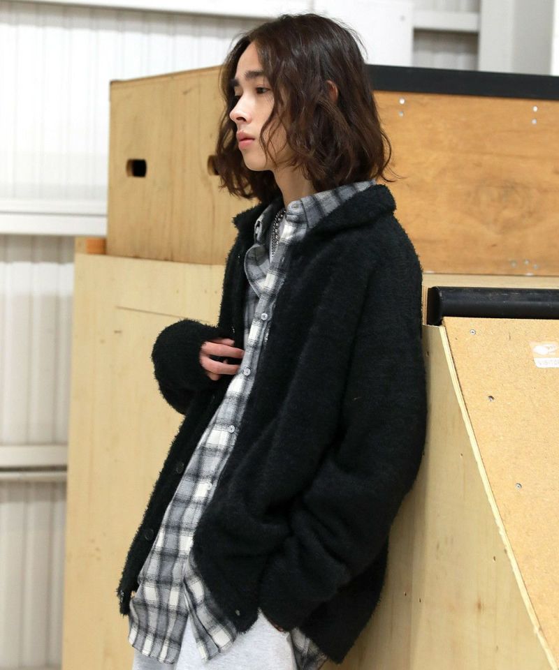 高見えする長めの毛足を持つ、フェザーヤーンを使用しています。フェザーヤーンならではの優しいタッチで、オシャレなルックスとストレスフリーな着心地を実現。ご家庭でのケアも簡単で、デイリーウェアにぴったりな素材です。