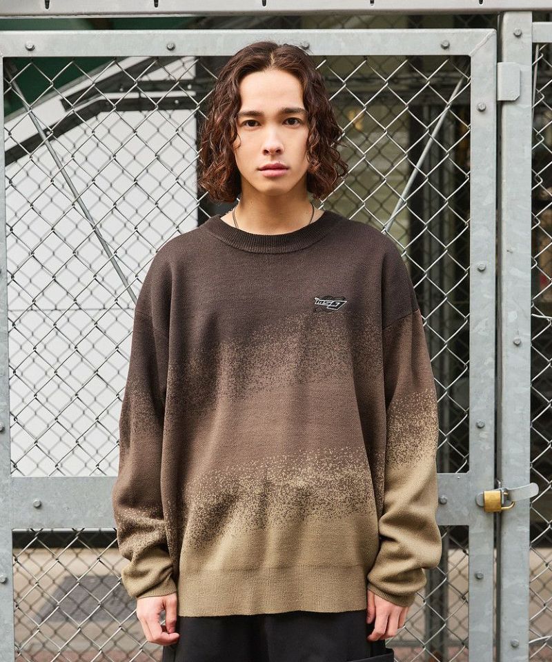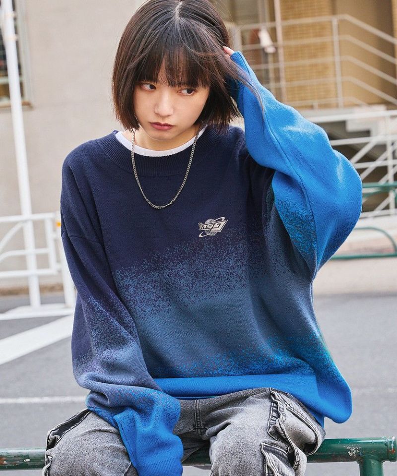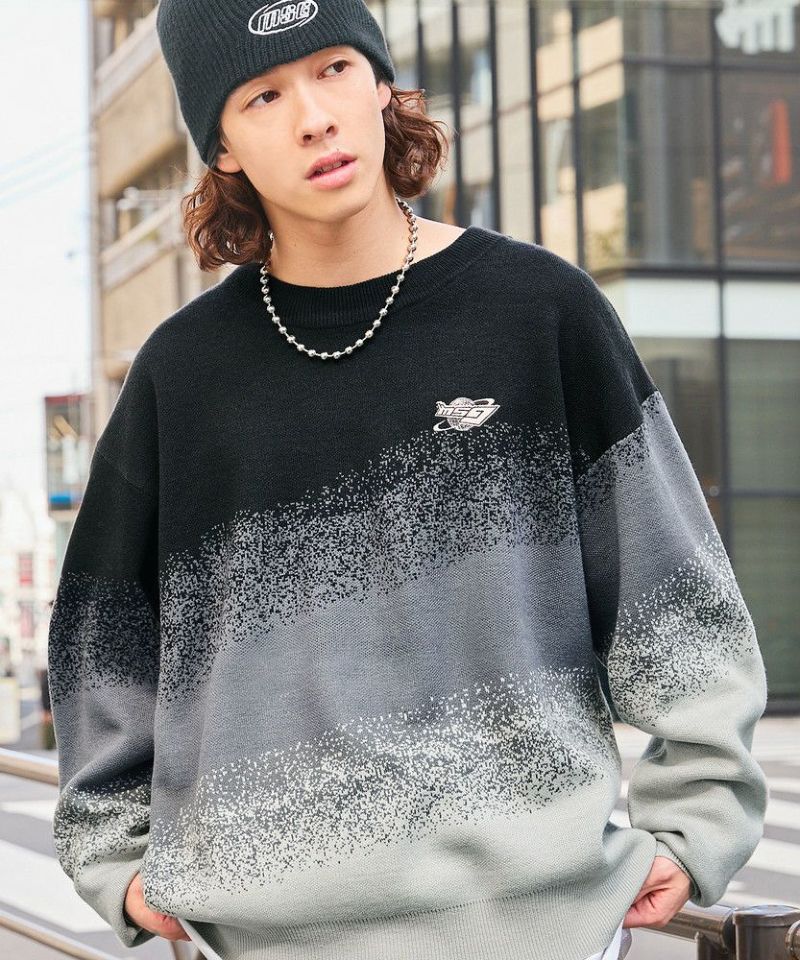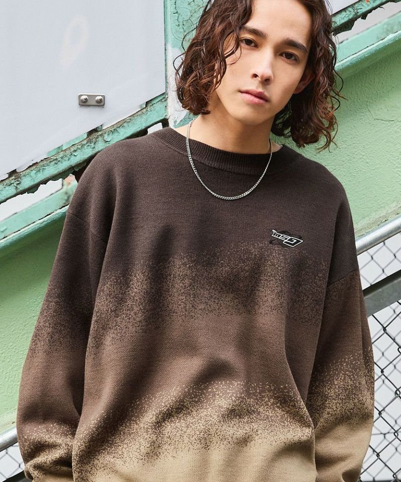 ジャガードニットによるグラデーションパターンが新鮮なオーバーサイズニット。胸元には「MSG」のブランドロゴ刺繍が施されており、ワンポイントに。