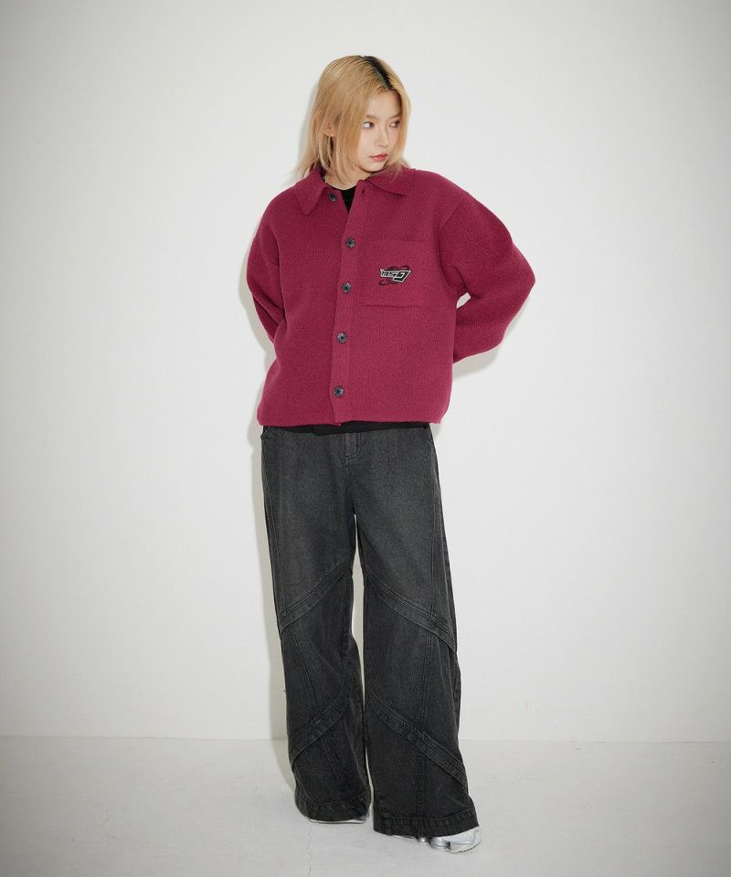 レトロな雰囲気のポロ襟デザインに、ブランド刺繍がアクセントのニットジャケット。一枚着でも、ボタンを外してジャケットスタイルでも着こなせる汎用性の高いデザインです。襟付きのポロデザインで、胸ポケットと後身頃に施されたブランドロゴ刺繍がポイント。ゆるっとルーズなサイジングで抜け感のあるシルエットも今っぽい一着です。レディース、メンズ問わずお使い頂けるユニセックスアイテムです。
