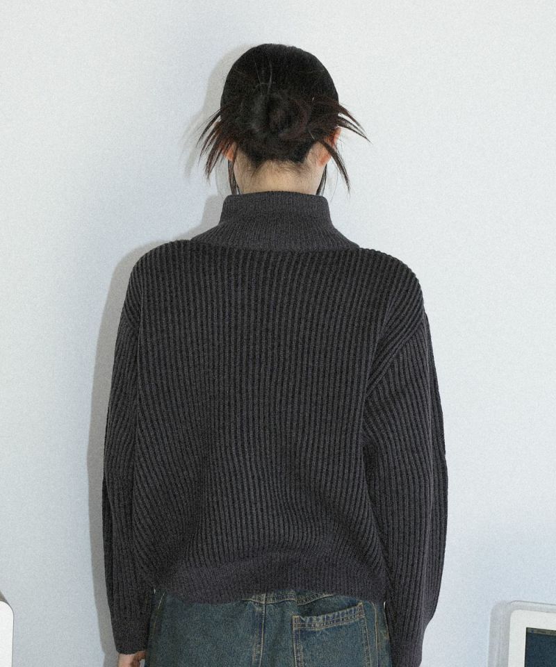 存在感のあるデザインで、着こなすだけでトレンド感のあるコーデに仕上がります。肌寒い秋や春にはカーディガンのように気軽に羽織ったり、冬はコートやジャケットのインナーとしてロングシーズン活躍します。落ち着いた配色でコーディネートに取り入れやすいカラー展開のため、デニムやワイドめのパンツなどと合わせるだけで着こなしが決まります。