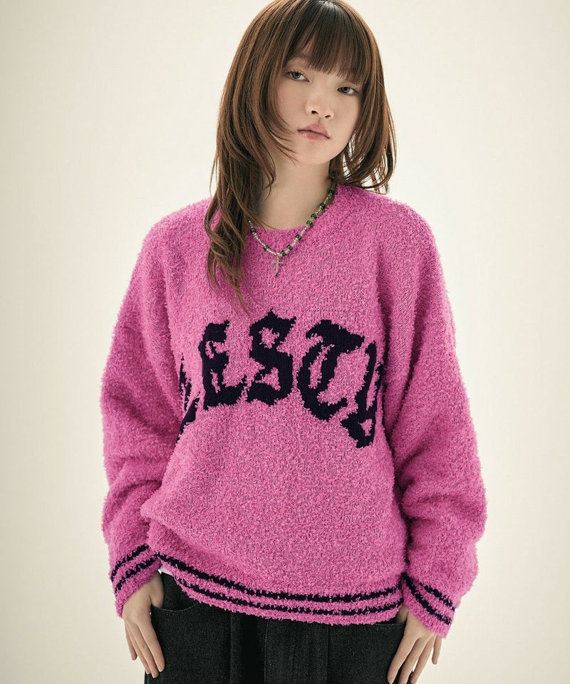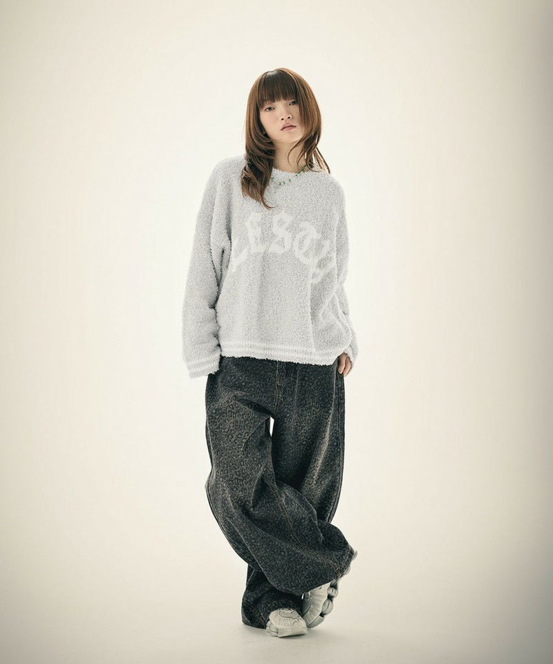 ・表面に立体感のあるリボンヤーンを使用した、存在感抜群のグラフィックニット。