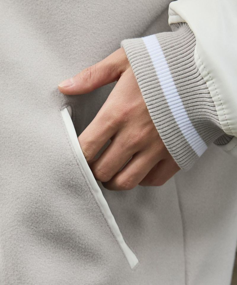 身頃は保温性に優れたメルトン素材、裏地はキルティング仕様になっています。裏地はポリエステル100%、リブ部分はストレッチ性もあり、着脱や動作がスムーズに行えるストレスフリーな着心地です。