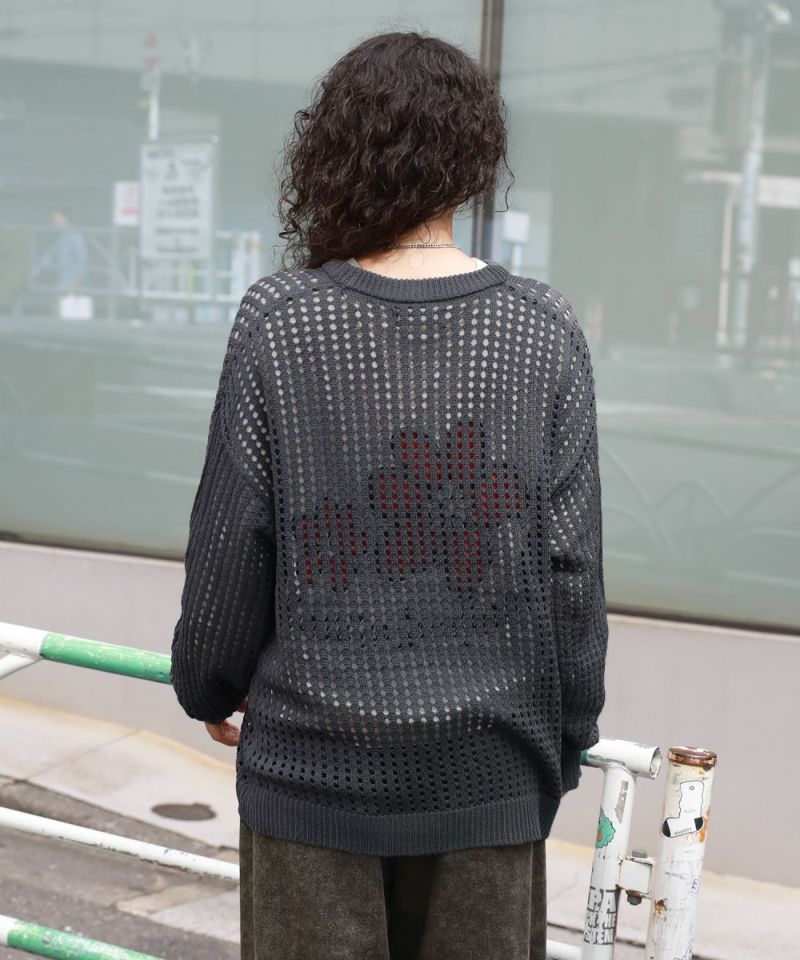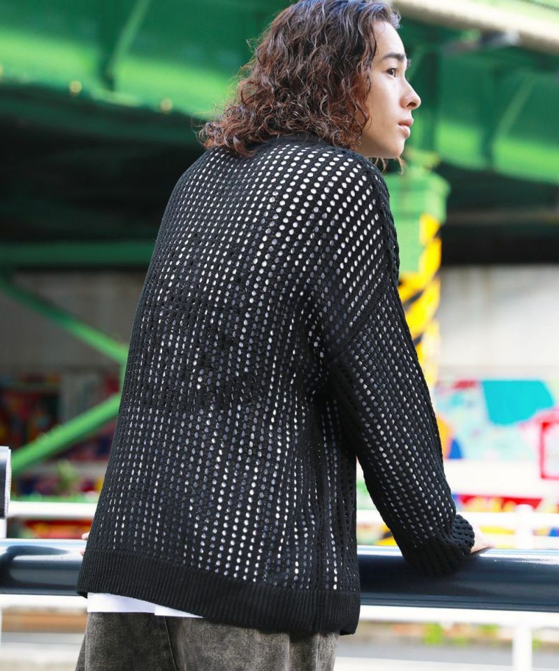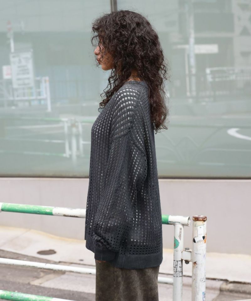 今季注目のメッシュ編みニット。大きめのメッシュ編みでタンクトップやカットソーなどインナーとのレイヤードを楽しめる1着。ざっくりとしたルーズシルエットとドロップショルダーが今っぽいリラックス感を演出します。取り入れるだけで旬の着こなしが作れるおすすめのアイテムです。