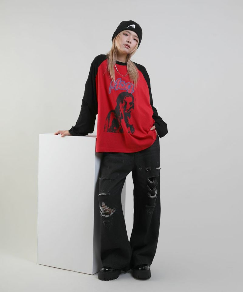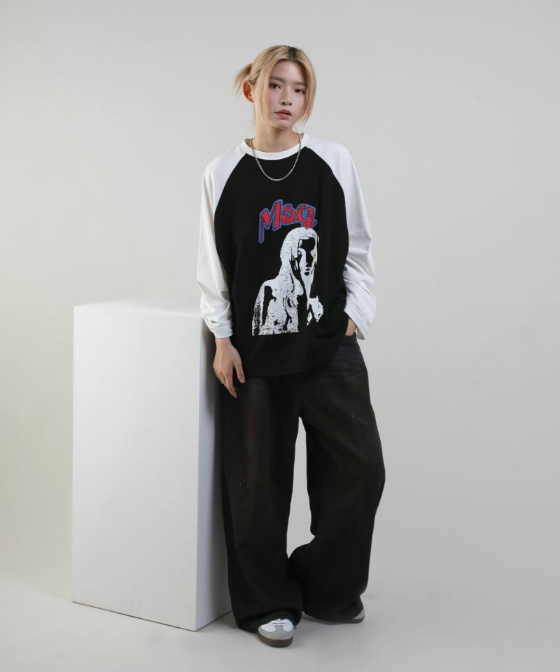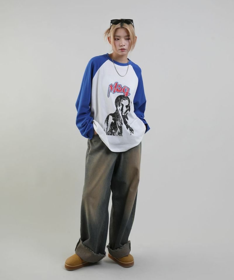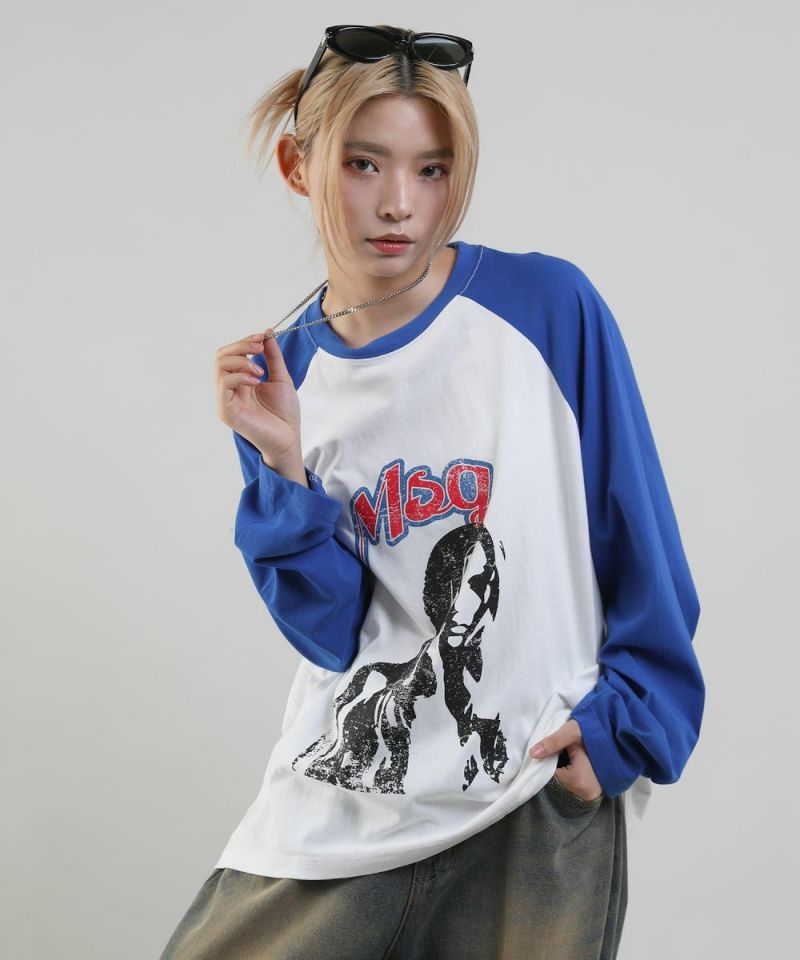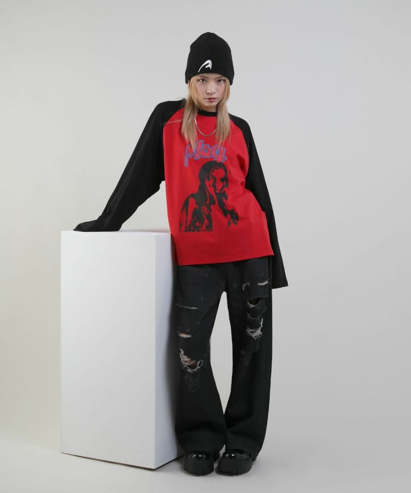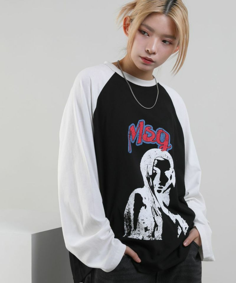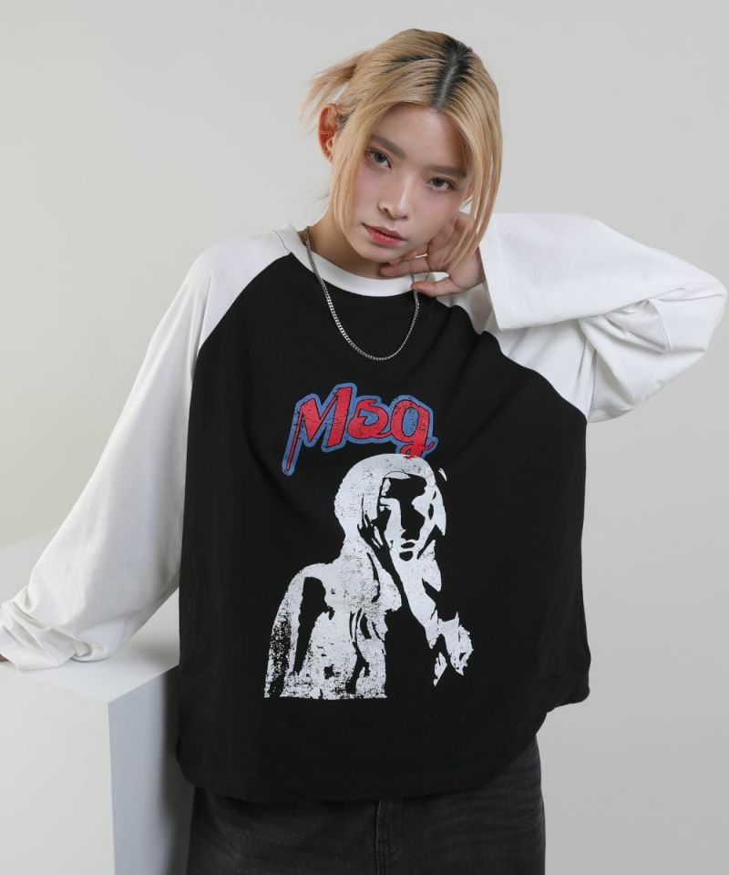 ヴィンテージ感溢れるプリントが今っぽいラグランカットソー。フロントに施された古着のようなかすれたプリントが特徴です。ややワイドな身幅やアームホール、リラックス感のあるラグランスリーブなど、ボディは今年らしくゆるっと着こなせるビッグシルエットデザイン。シンプルながらインパクトのあるカットソーで、ワイドパンツに合わせるだけでストリートや古着ミックスコーデが完成します。レディース、メンズ問わずお使い頂けるユニセックスアイテムです。