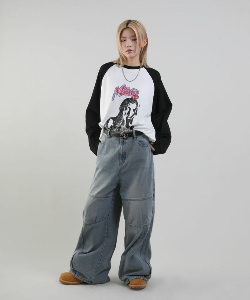 ストリート感のあるビッグシルエットデザインで、合わせるだけで今っぽいコーデが完成します。デニムやカーゴなどのワイドパンツとも相性がよく、ヴィンテージライクなカジュアルスタイルにまとまります。