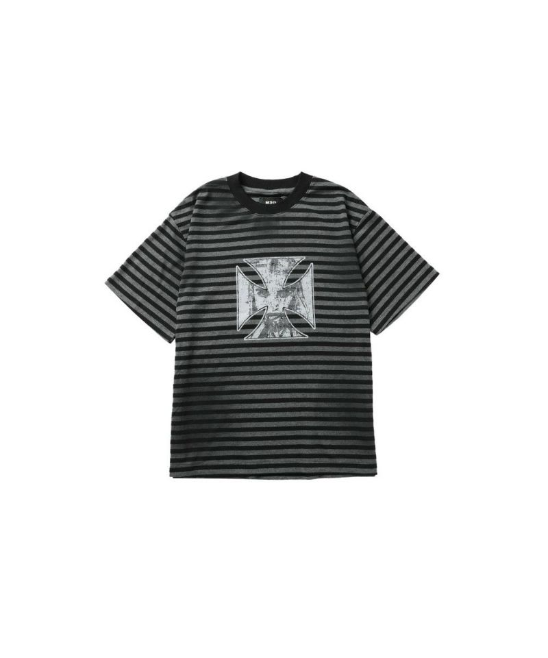 ・ヴィンテージ感のあるグラフィックプリントが印象的な、ボーダー柄のオーバーサイズTシャツ。